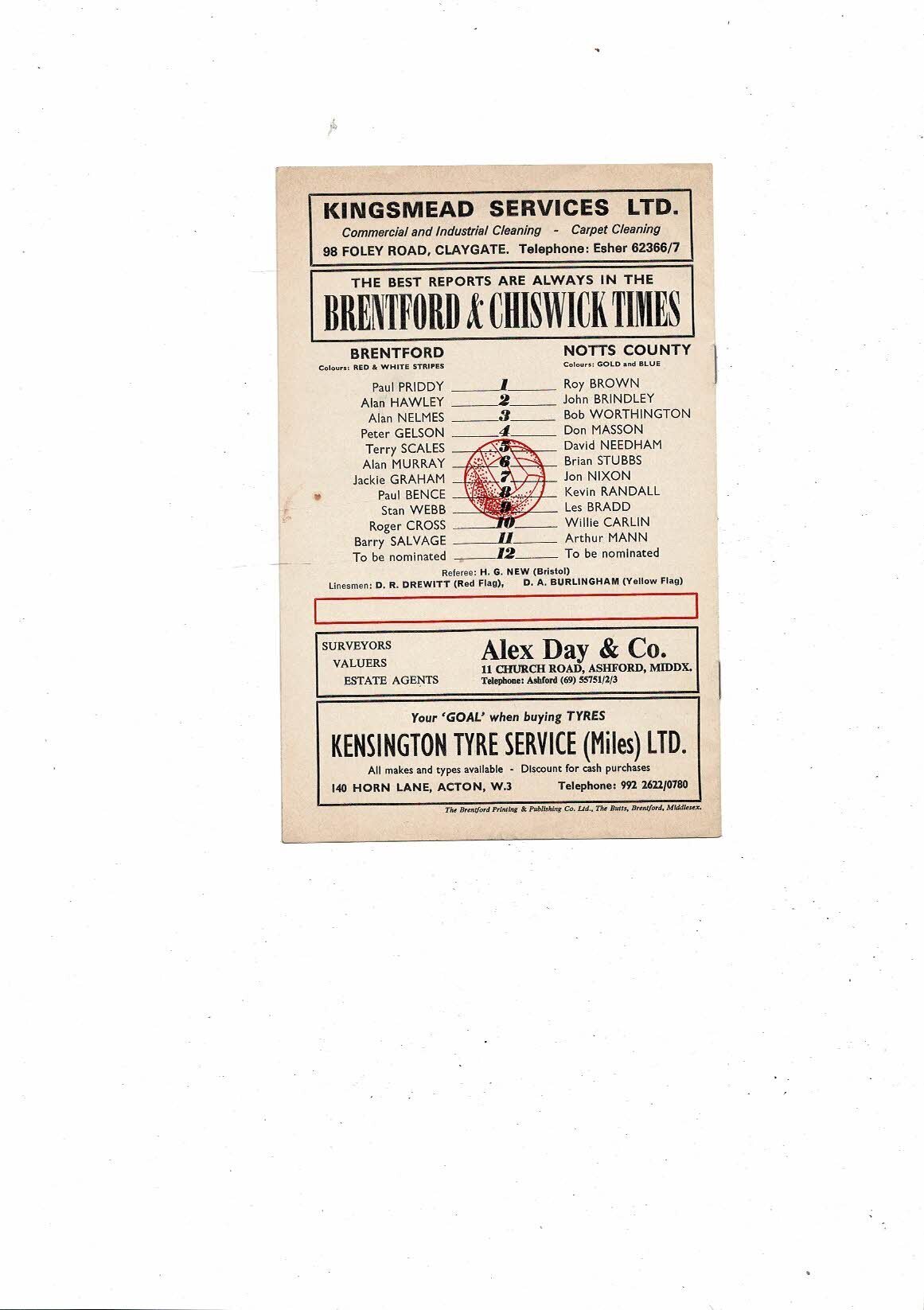 1972/73 Brentford v Notts County Football Programme