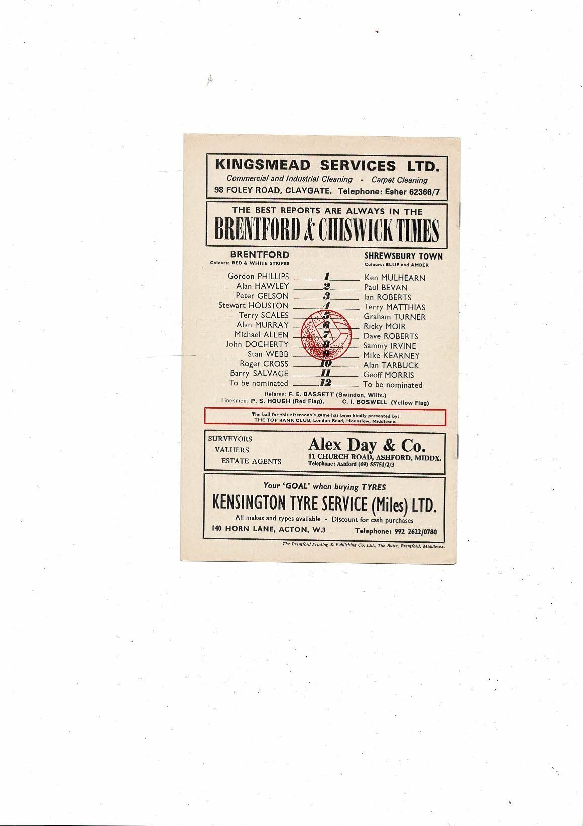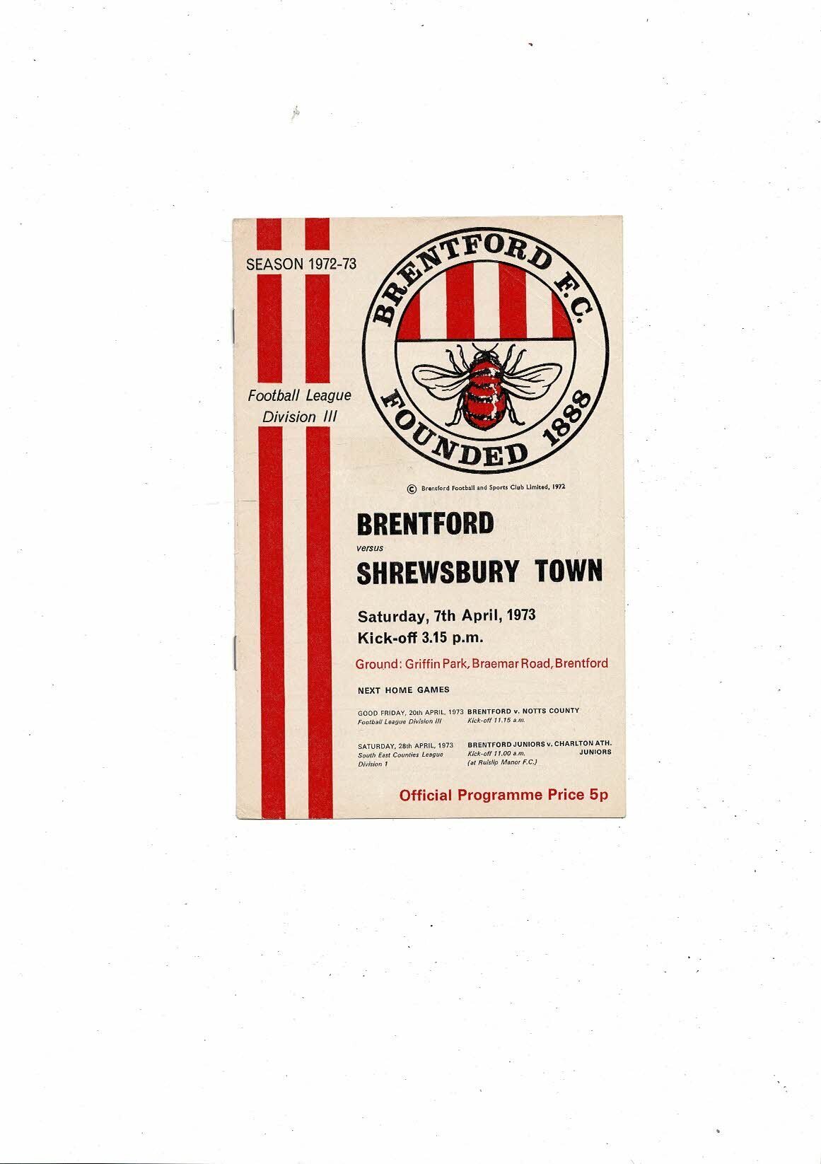 1972/73 Brentford v Shrewsbury Town Football Programme
