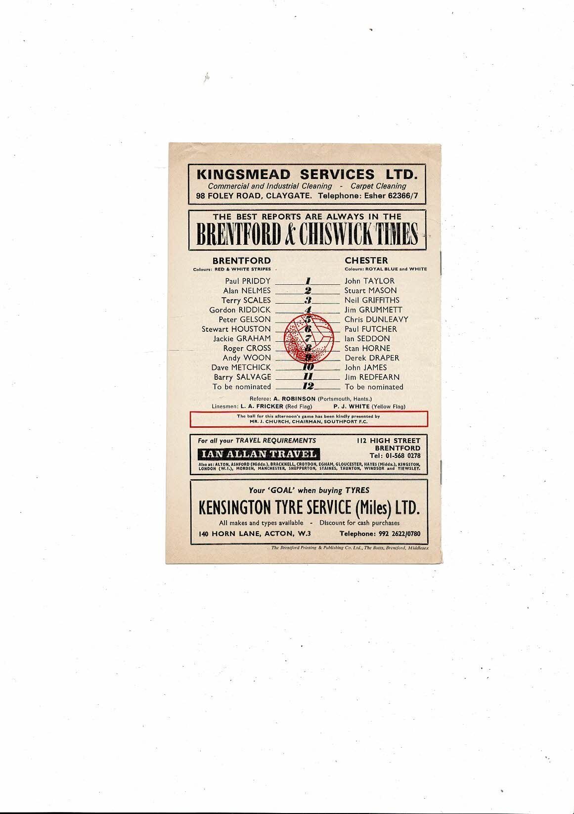 1973/74 Brentford v Chester Football Programme