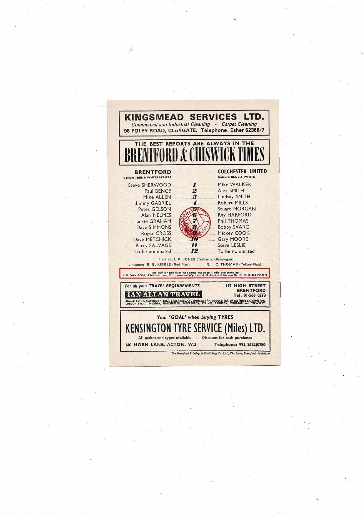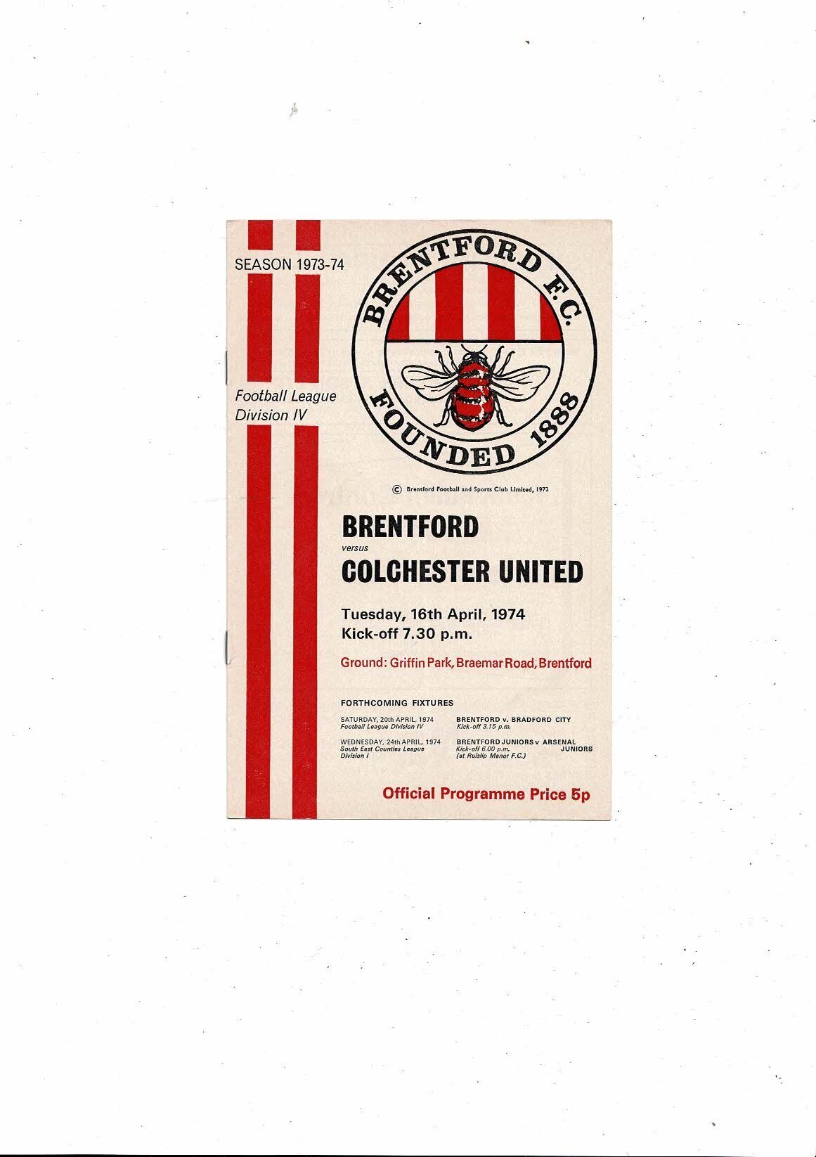 1973/74 Brentford v Colchester United Football Programme
