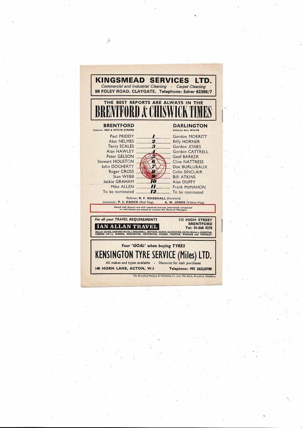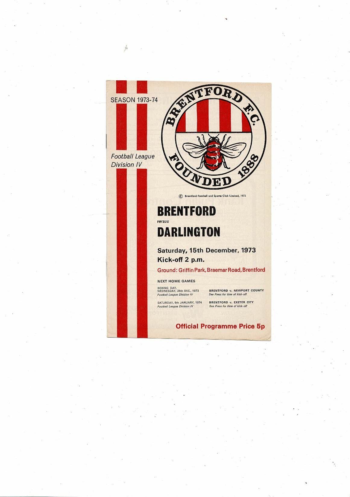 1973/74 Brentford v Darlington Football Programme