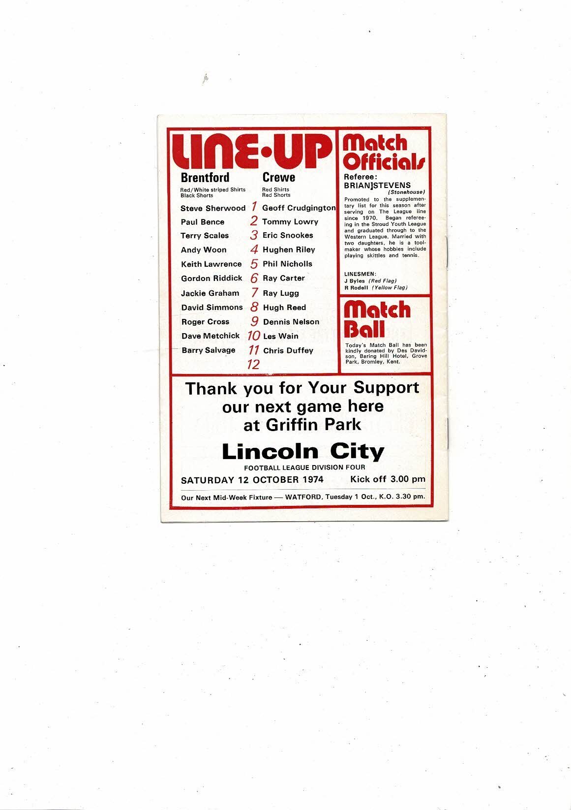 1974/75 Brentford v Crewe Alexandra Football Programme
