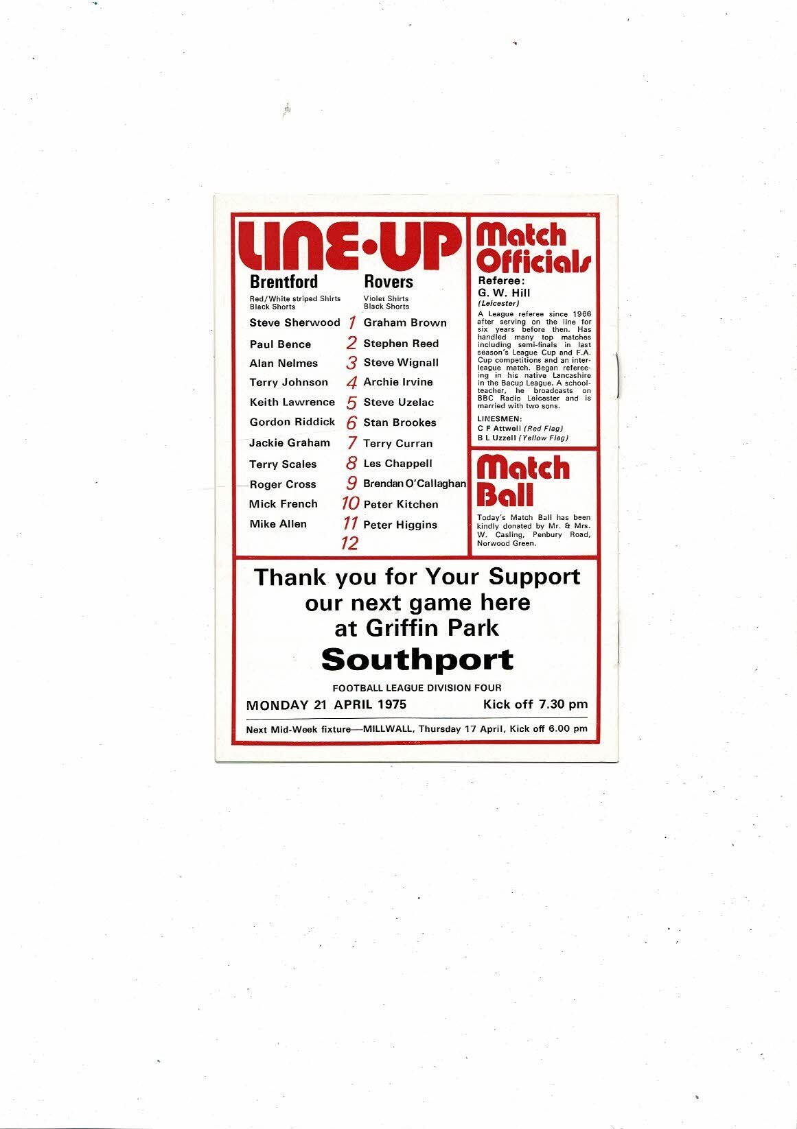 1974/75 Brentford v Doncaster Rovers Football Programme