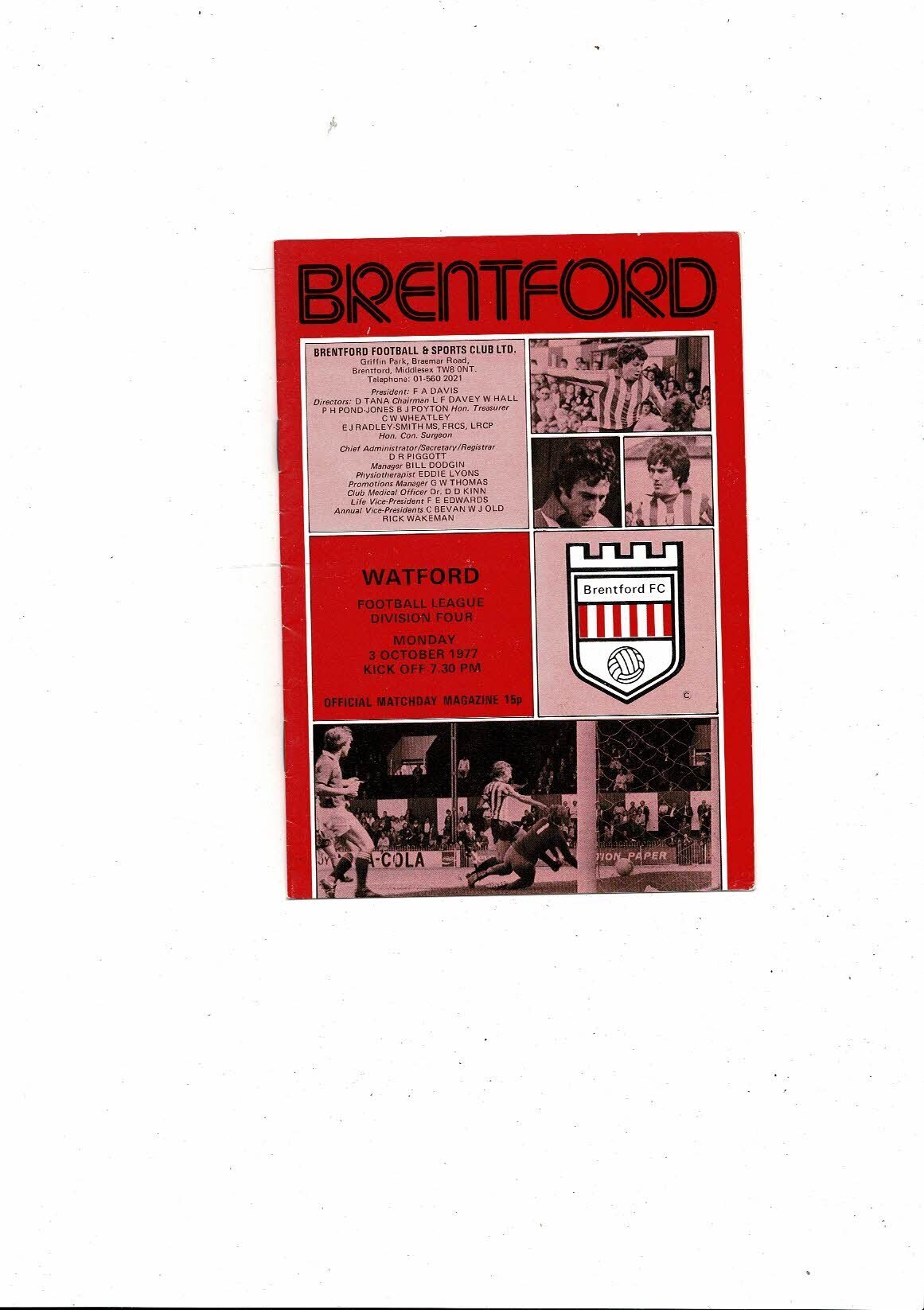 1977/78 Brentford v Watford Football Programme
