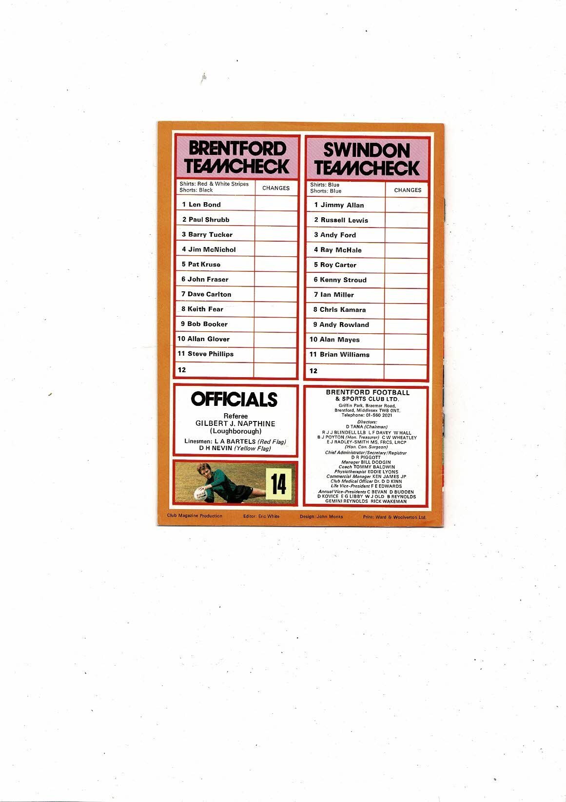 1979/80 Brentford v Swindon Town Football Programme