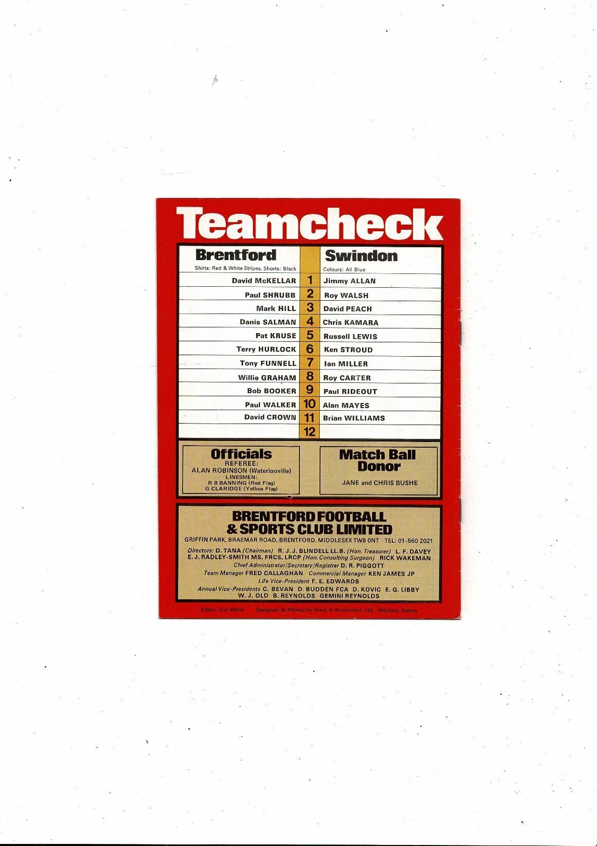 1980/81 Brentford v Swindon Town Football Programme