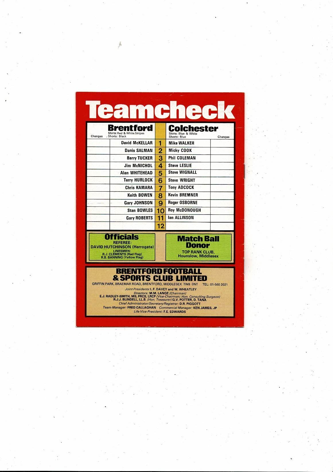 1981/82 Brentford v Colchester United FA Cup Football Programme