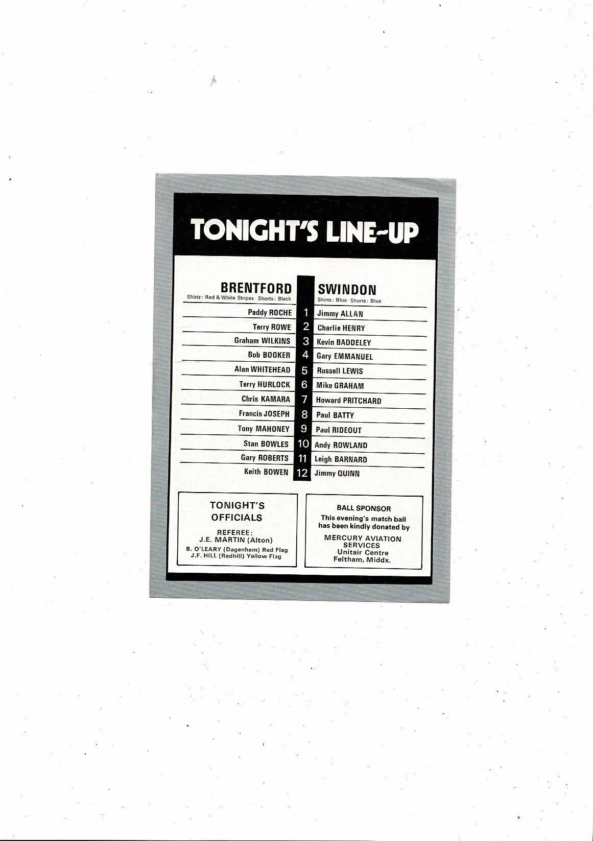 1982/83 Brentford v Swindon Town FA Cup Replay Football Programme