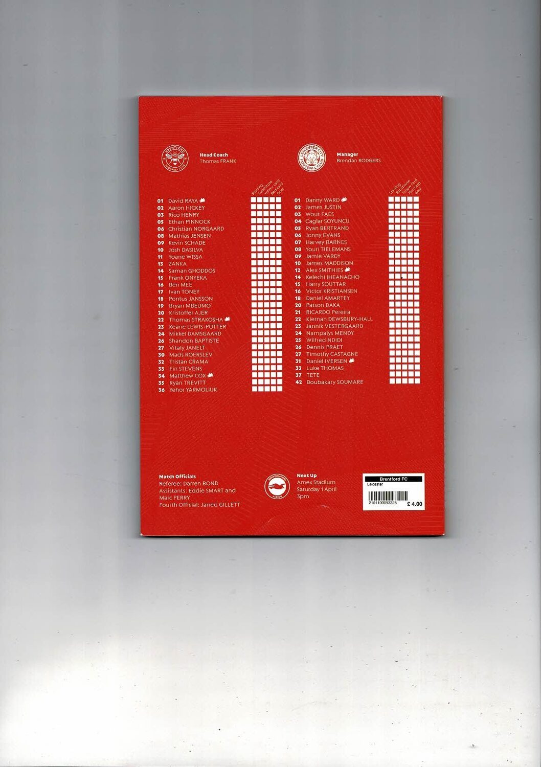 2022/23 Brentford v Leicester City Football Programme