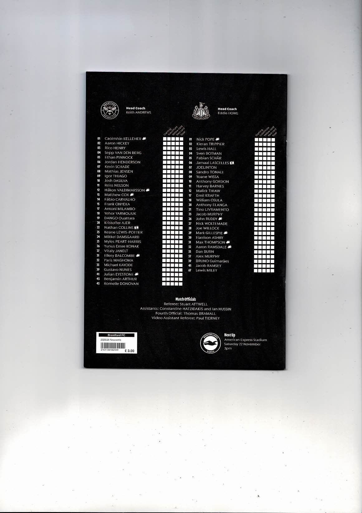2025/26 Brentford v Newcastle United Football Progamme