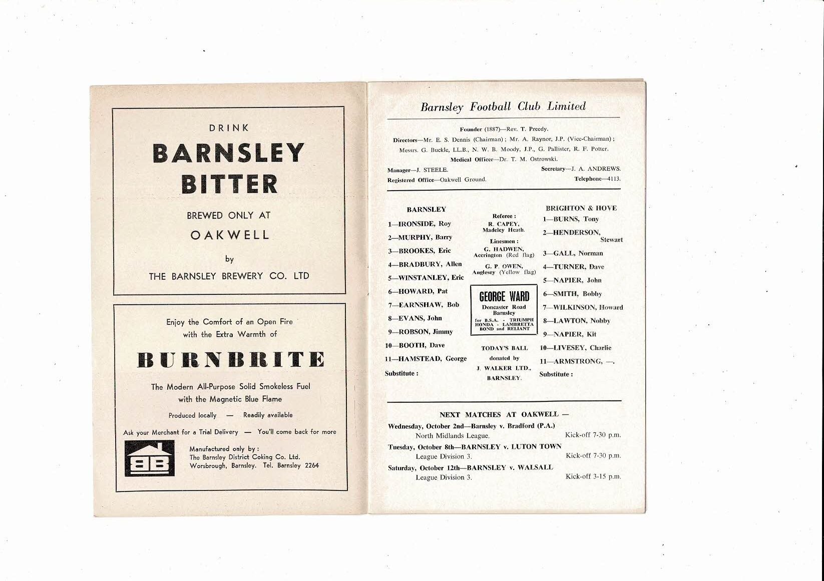 1968/69 Barnsley v Brighton Football Programme