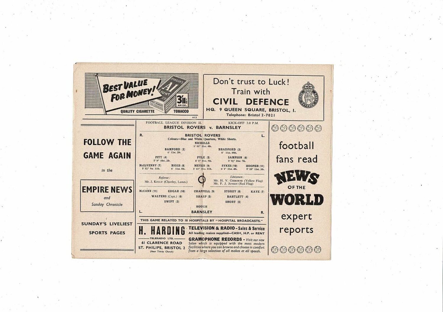 1956/57 Bristol Rovers v Barnsley Football Programme