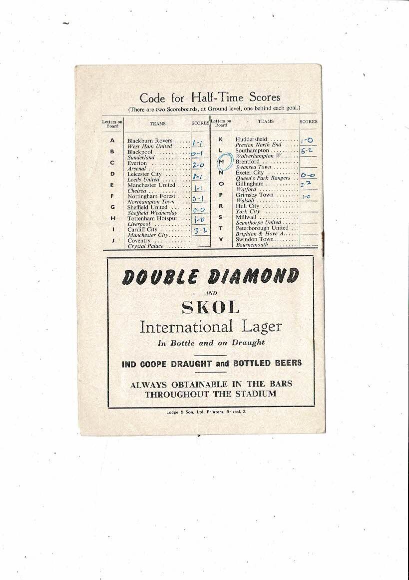 This original Football Programme is creased also has a fold with several tiny nic's, rusty staple, team changes & other writing on team page with writing on tables page & half times filled in