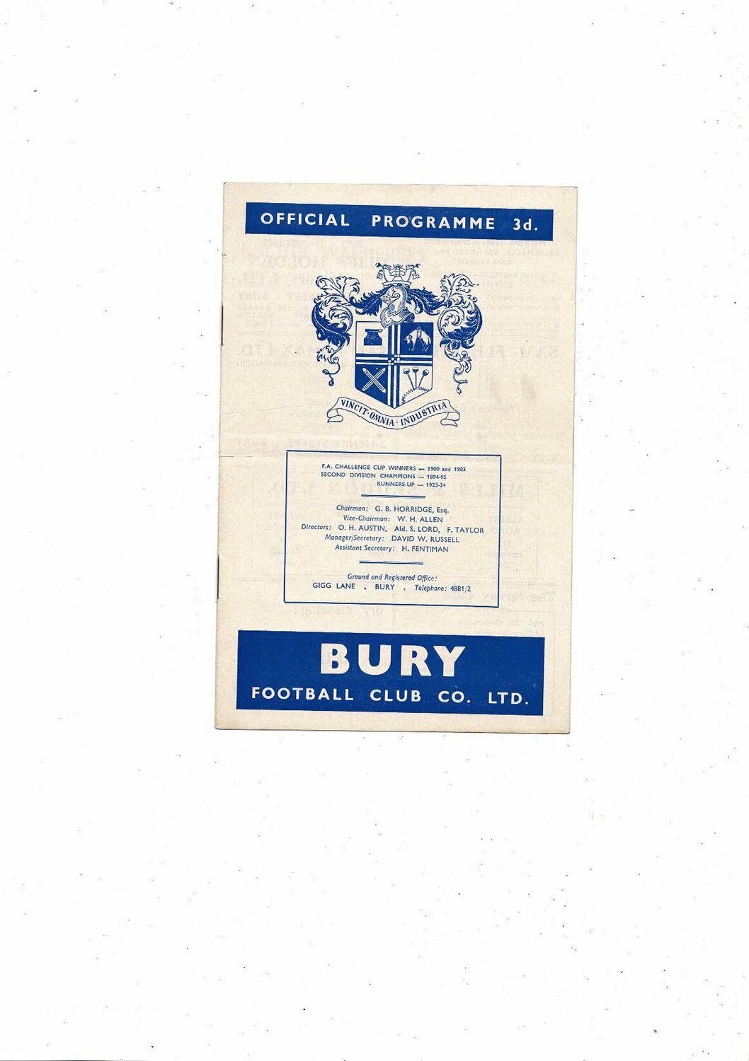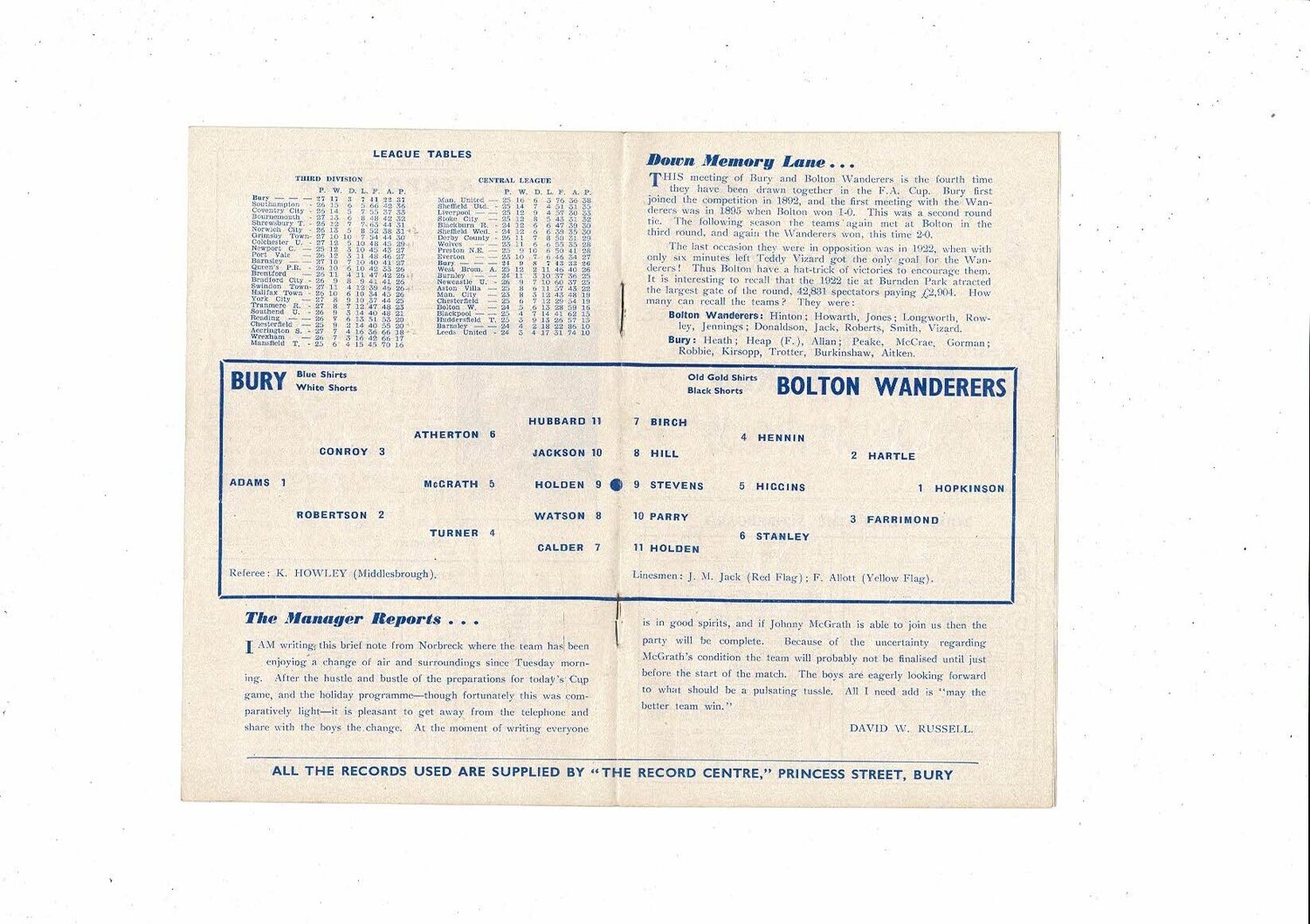 1959/60 Bury v Bolton Wanderers FA Cup Football Programme