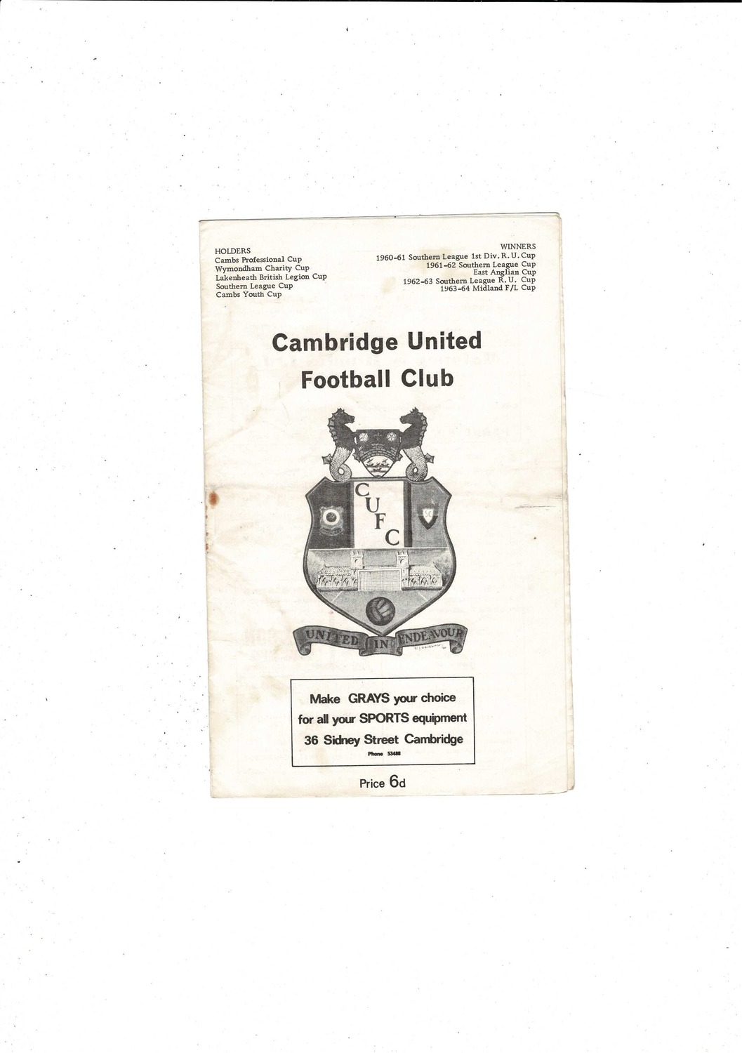 1965/66 Cambridge United v Cambridge City Floodlight League Football Programme