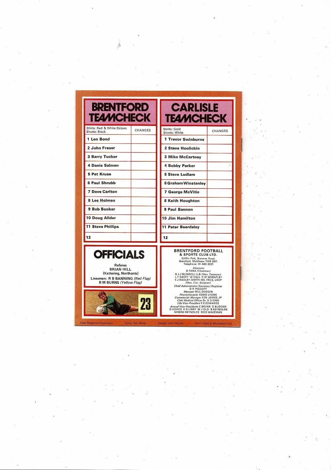 1979/80 Brentford v Carlisle United Football Programme