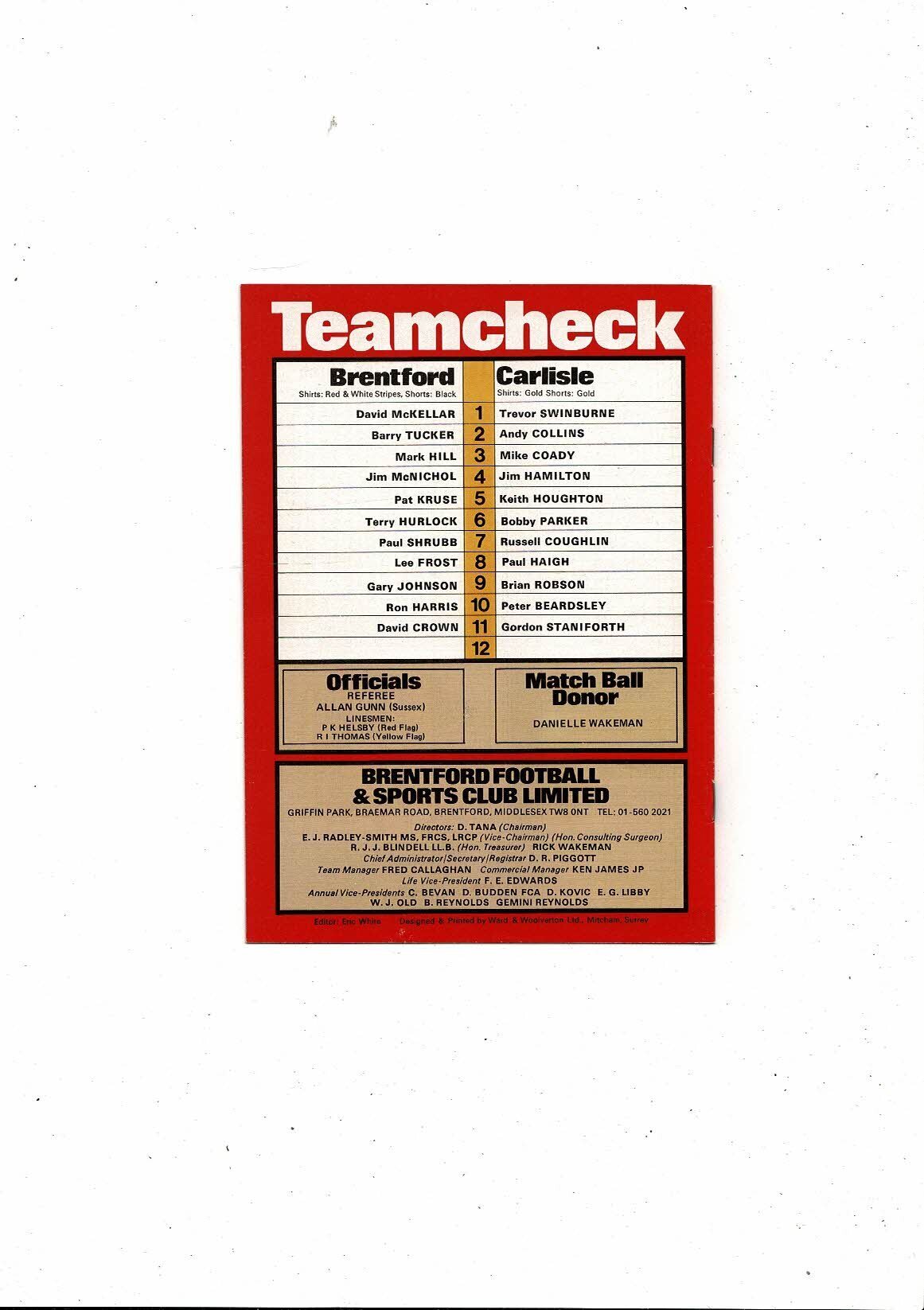 1980/81 Brentford v Carlisle United Football Programme