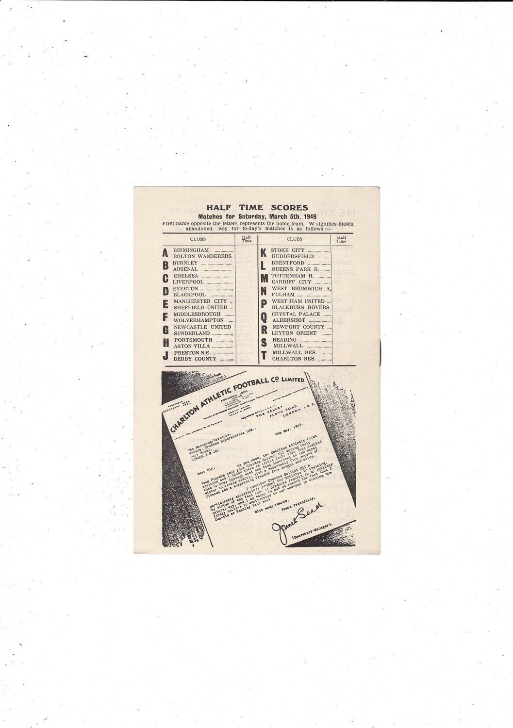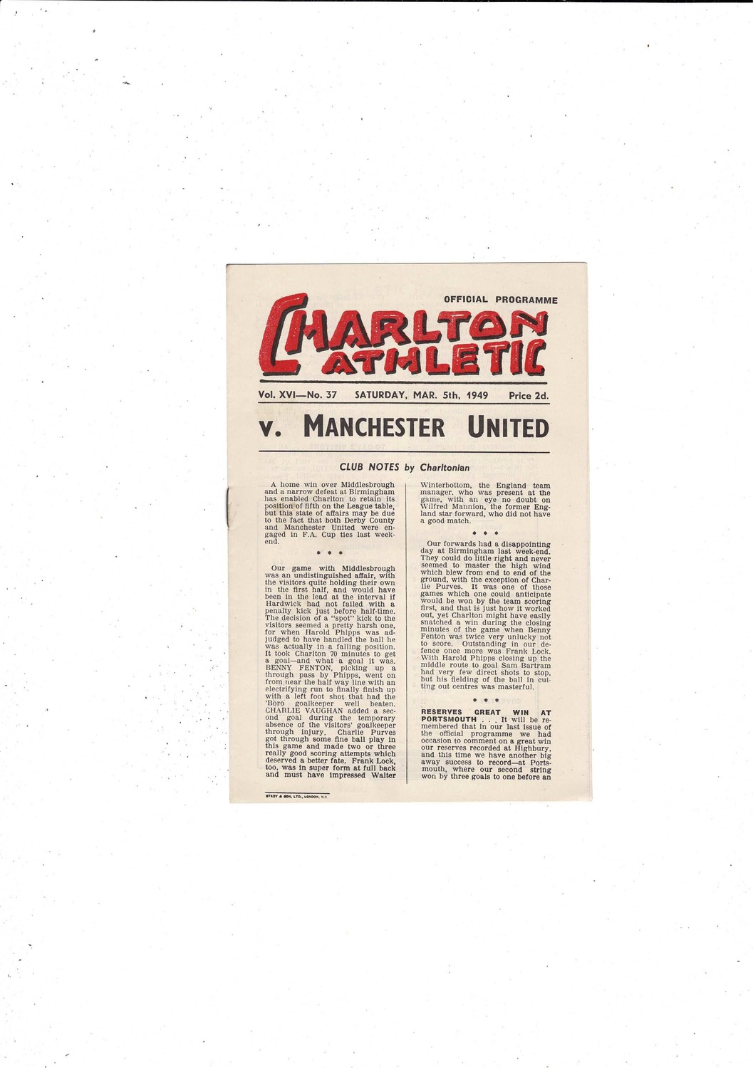 1948/49 Charlton Athletic v Manchester United Football Programme