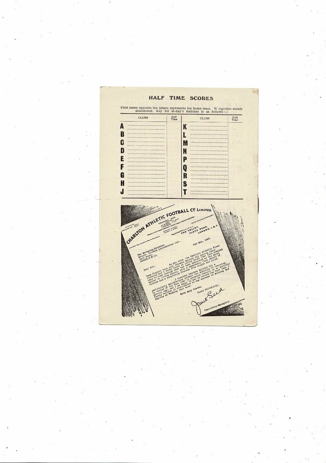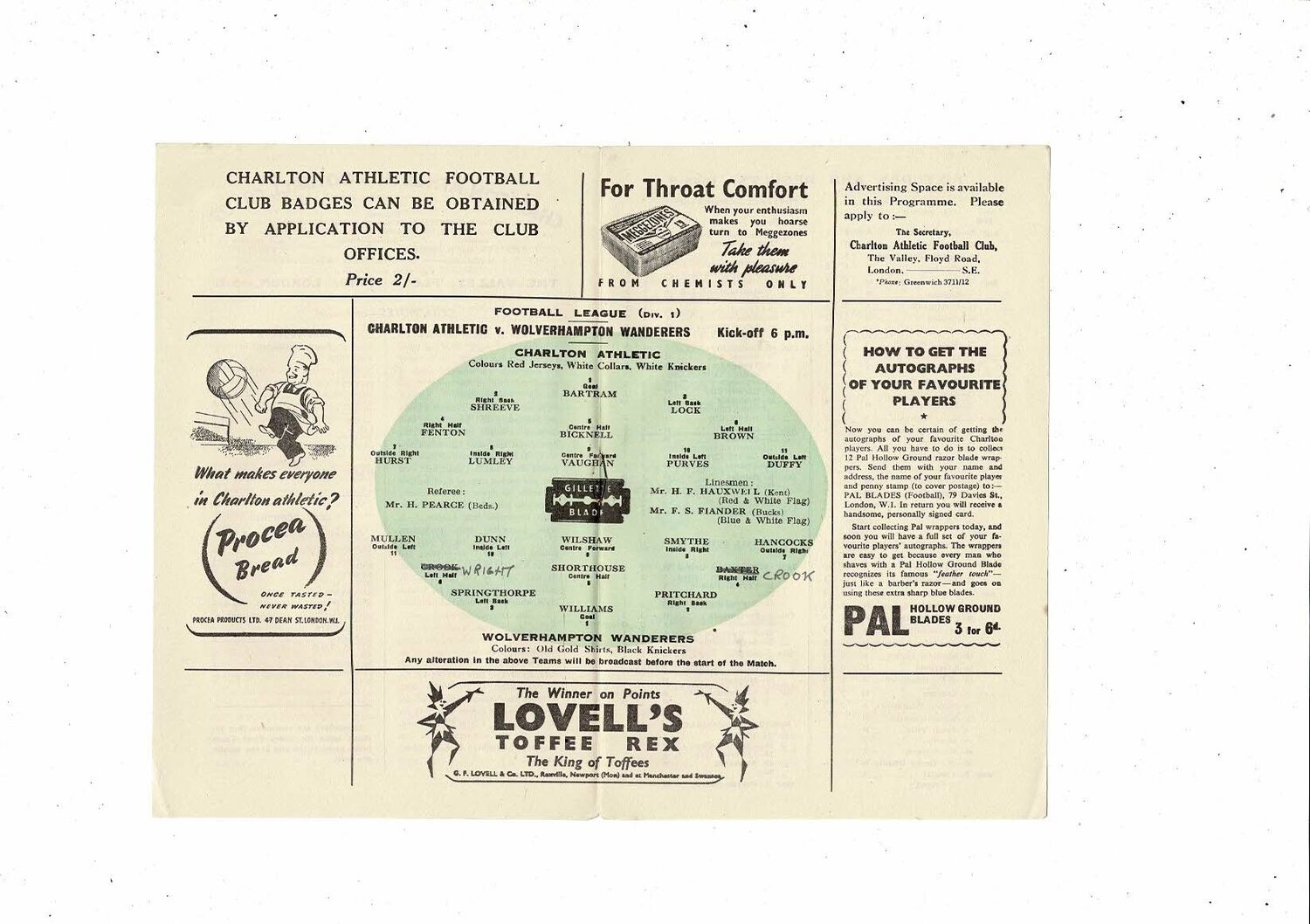 1948/49 Charlton Athletic v Wolves Football Programme