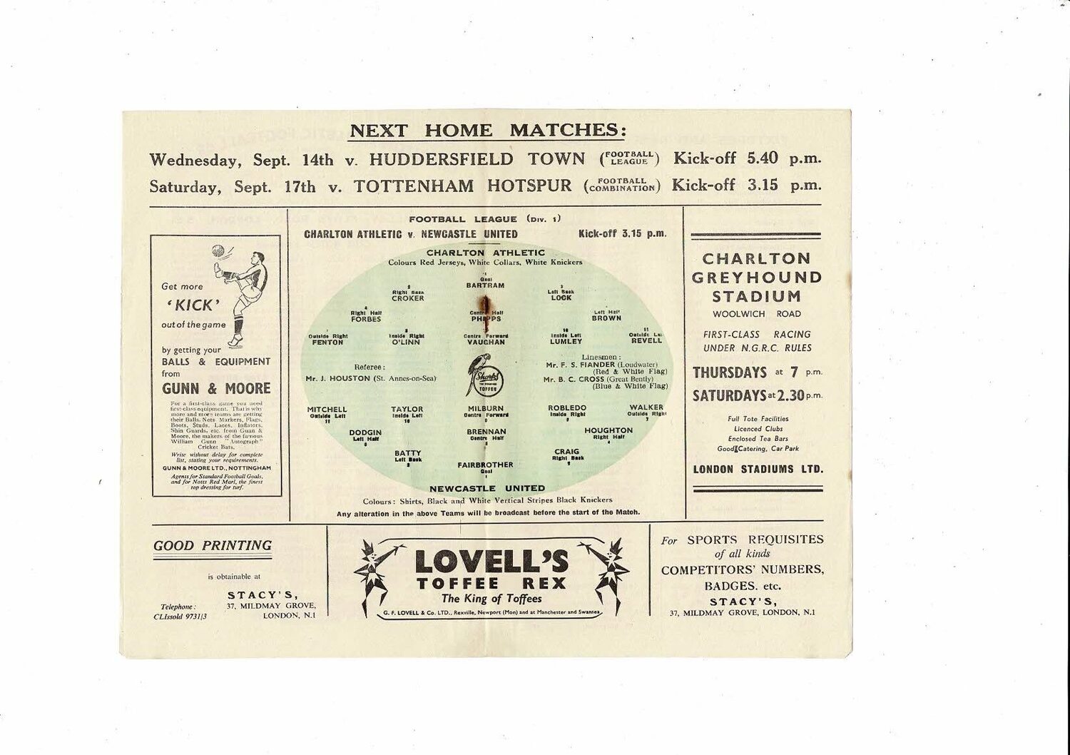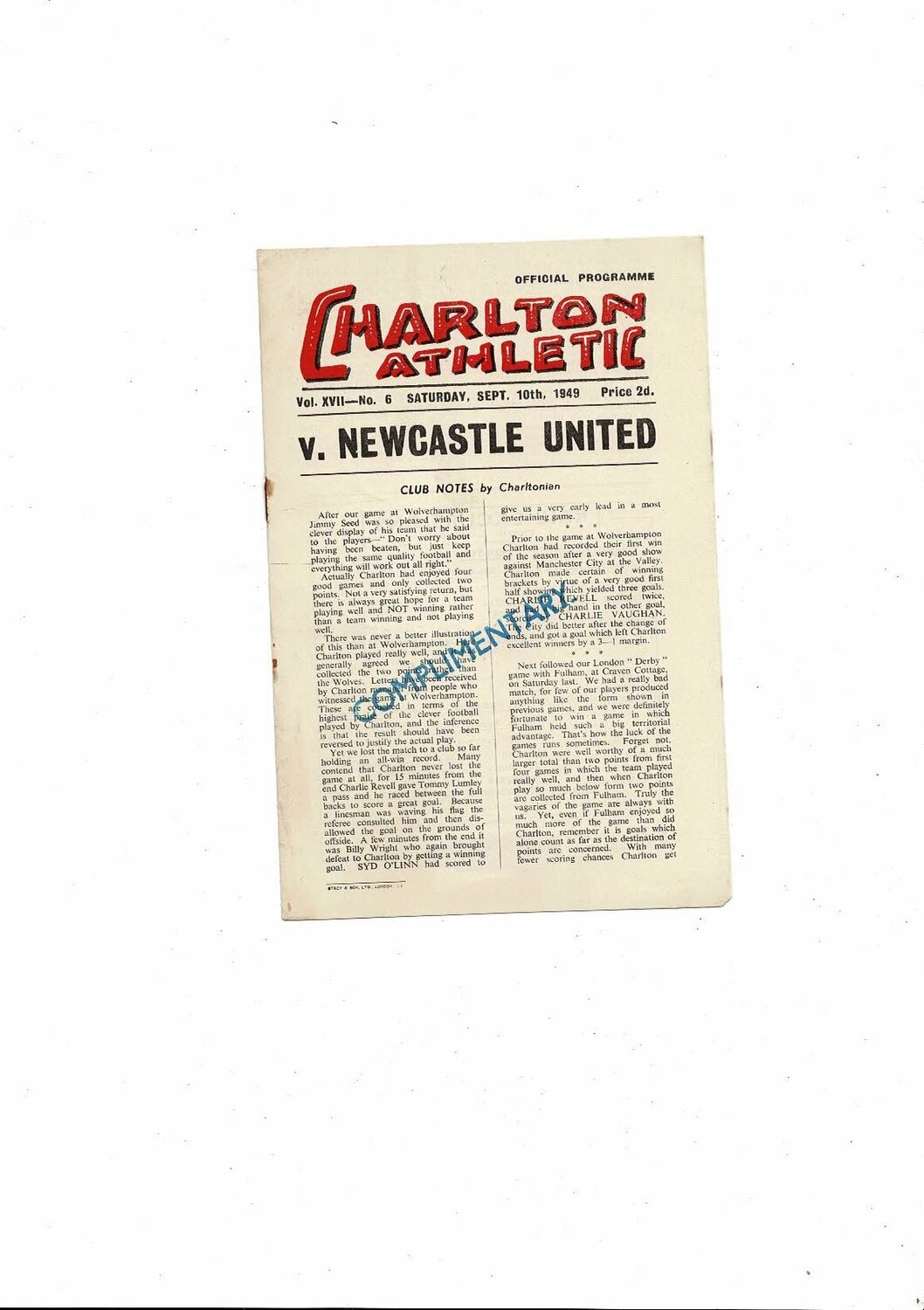 1949/50 Charlton Athletic v Newcastle United Football Programme
