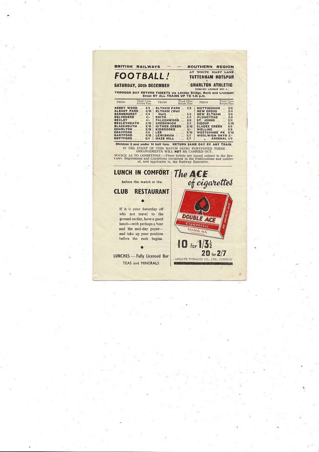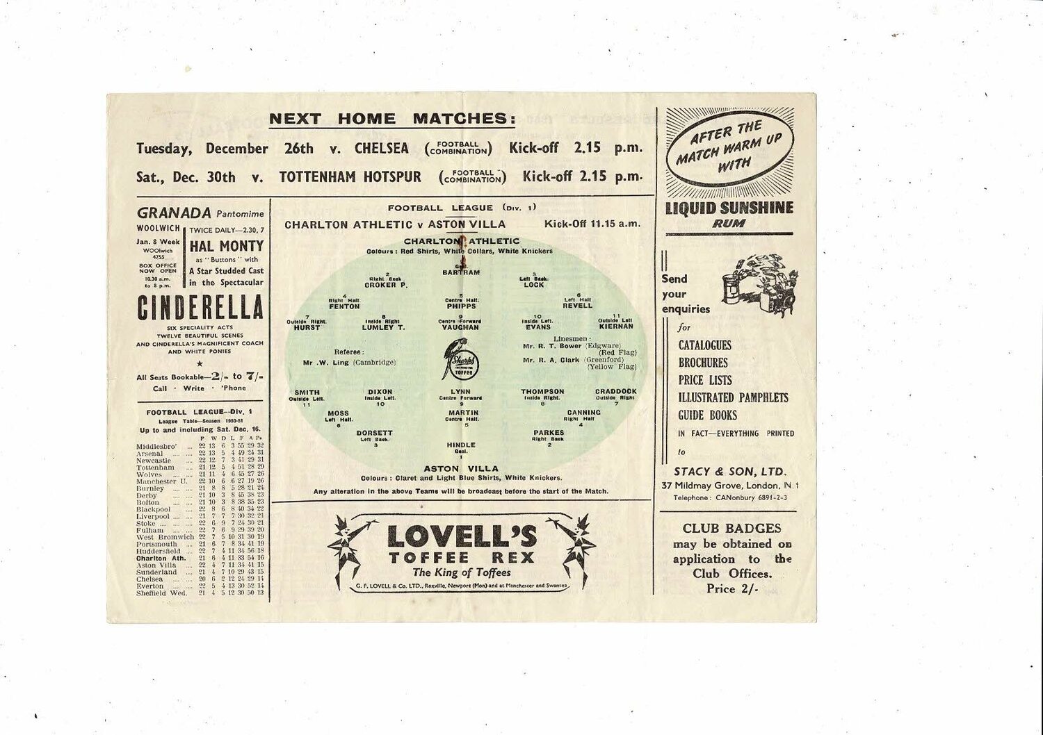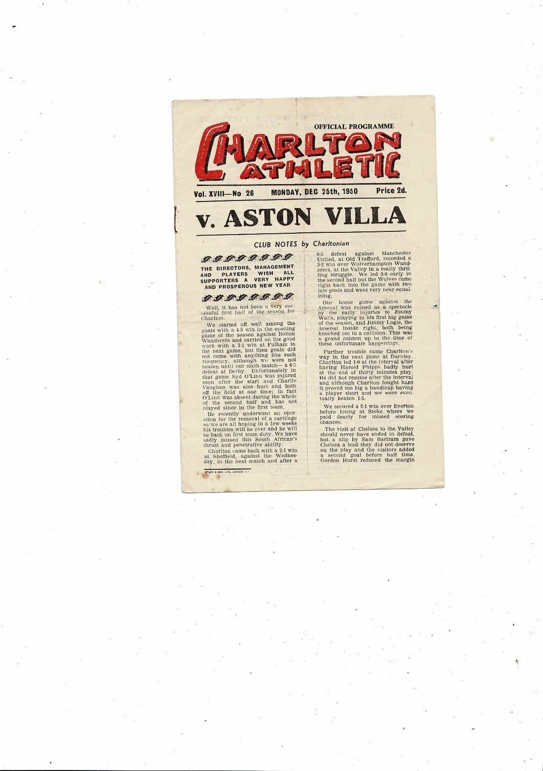 1950/51 Charlton Athletic v Aston Villa Football Programme