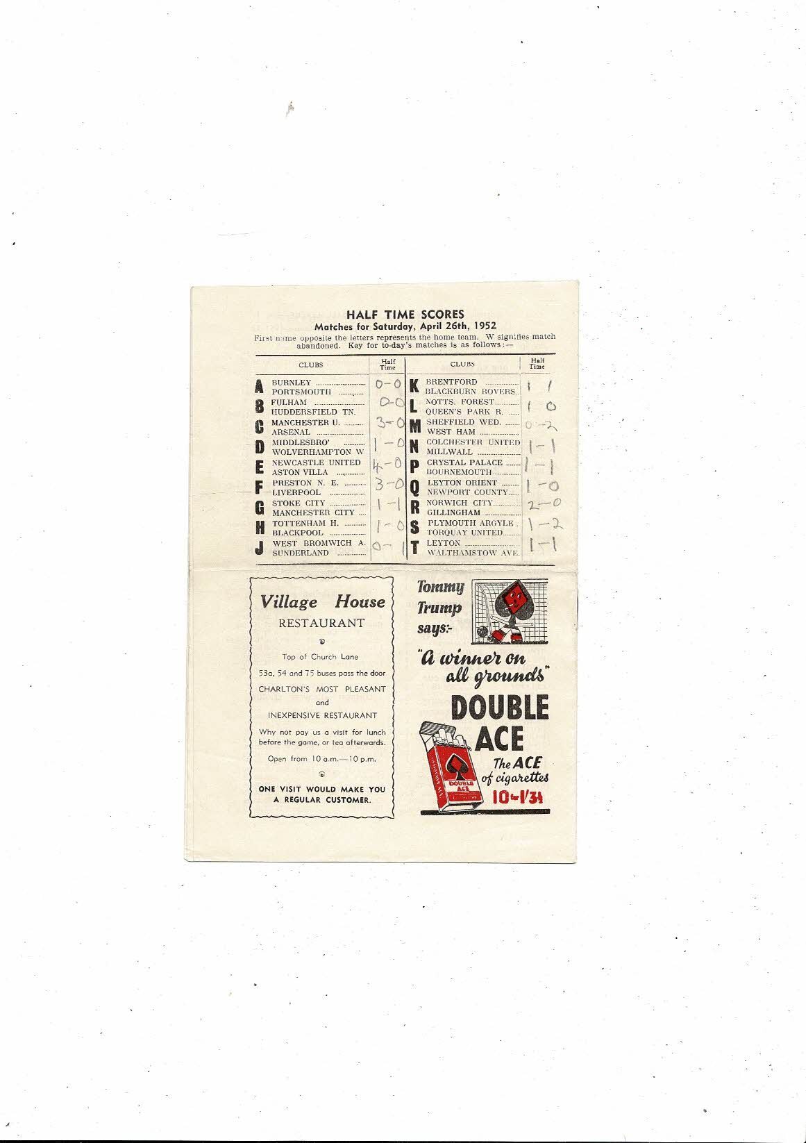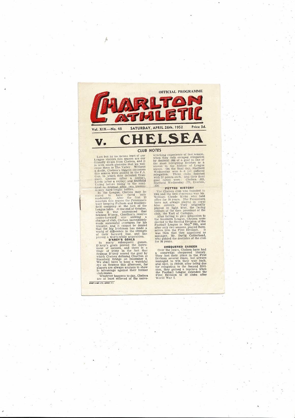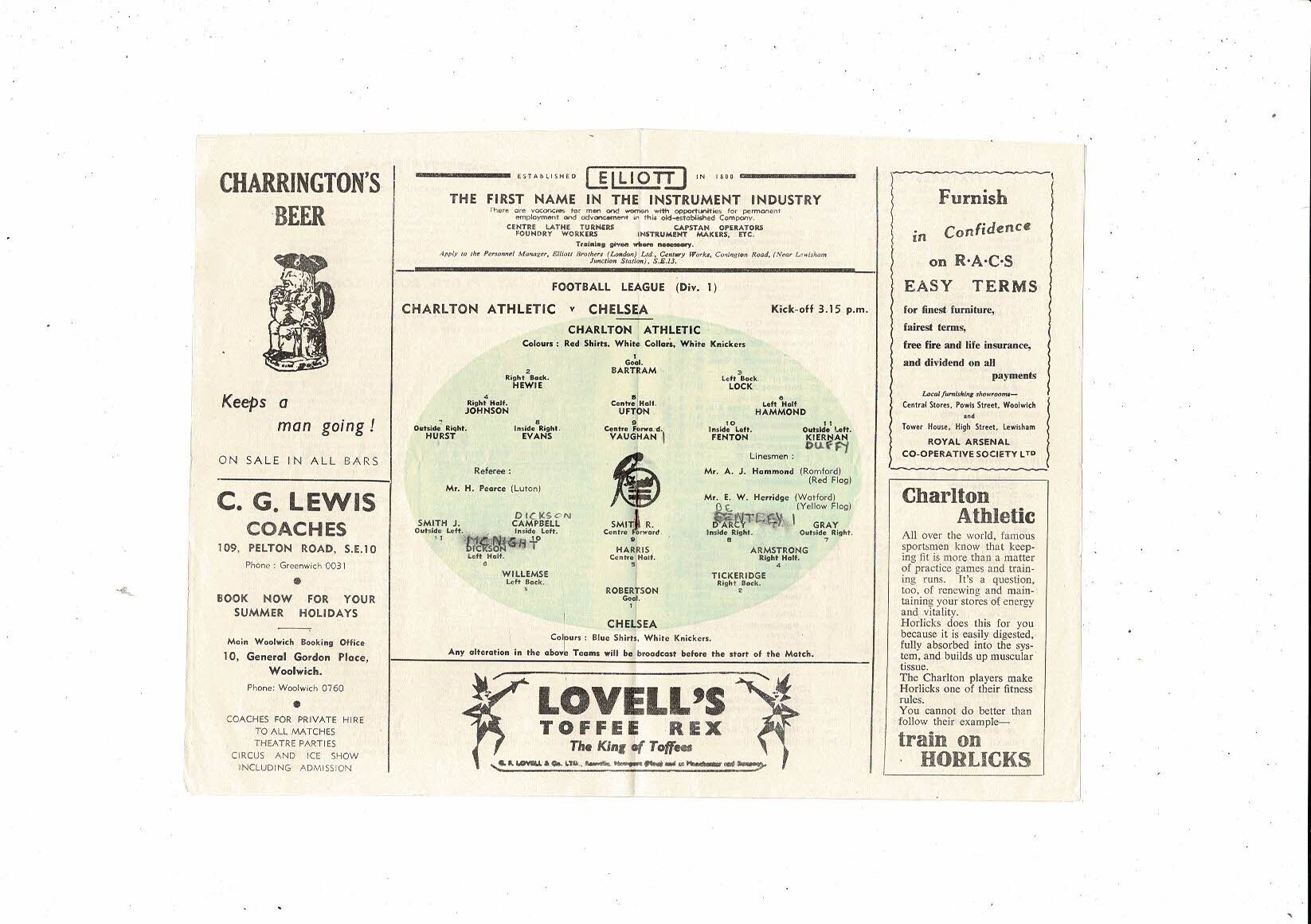 1951/52 Charlton Athletic v Chelsea Football Programme