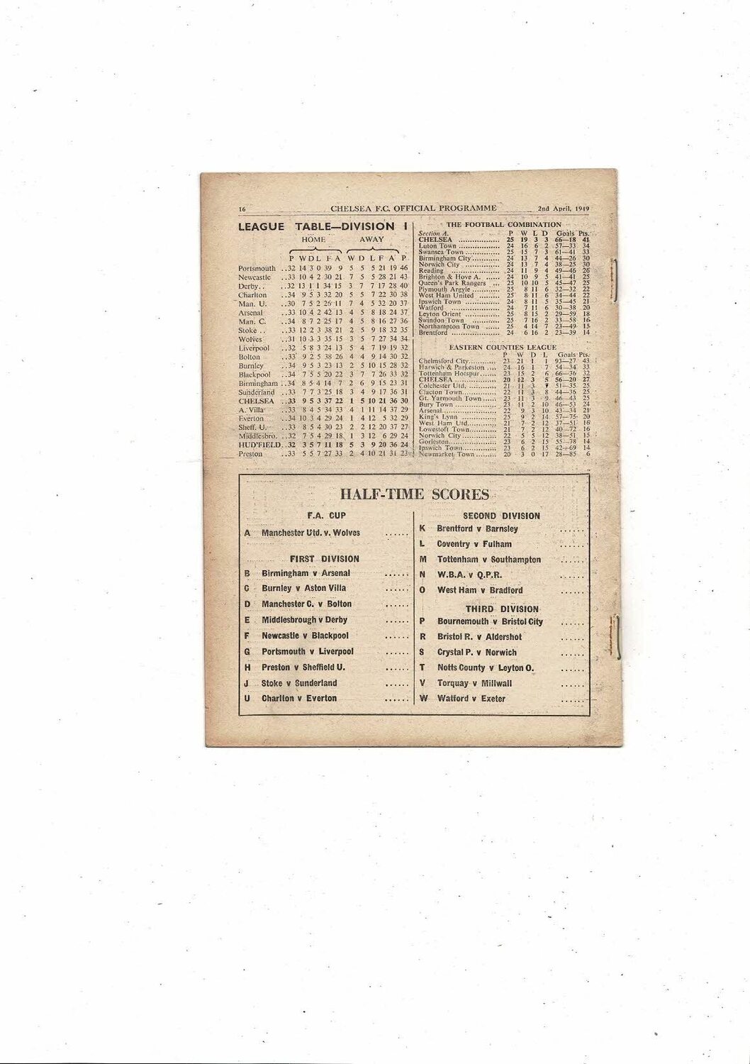 1948/49 Chelsea v Huddersfield Town Football Programme