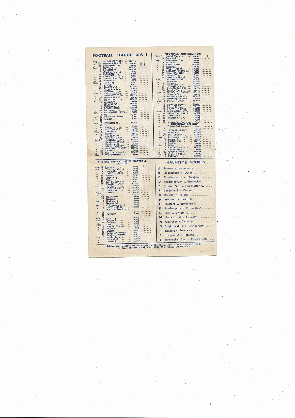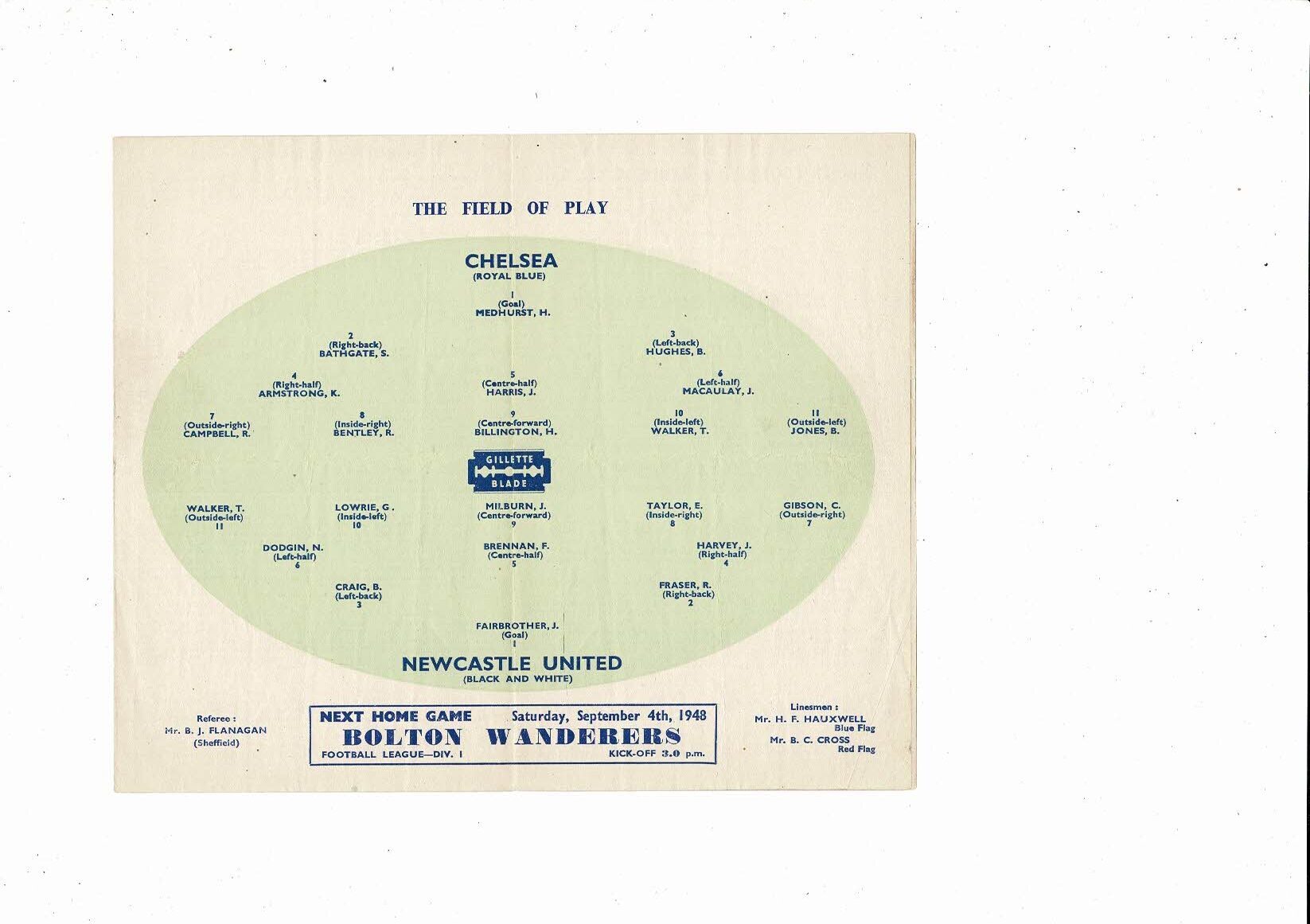 1948/49 Chelsea v Newcastle United Football Programme
