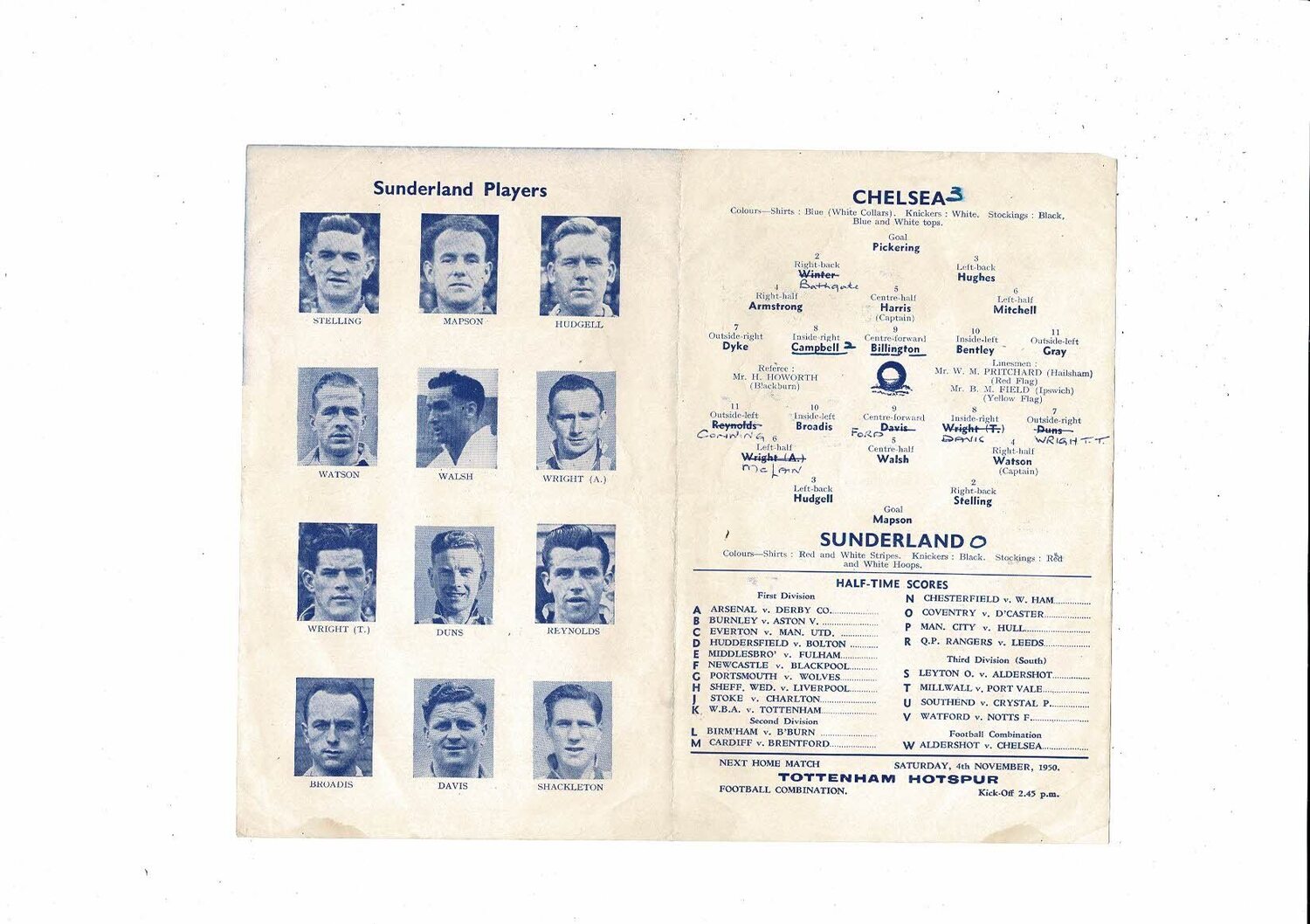 1950/51 Chelsea v Sunderland Football Programme