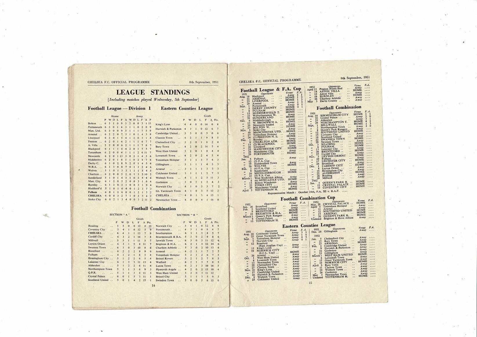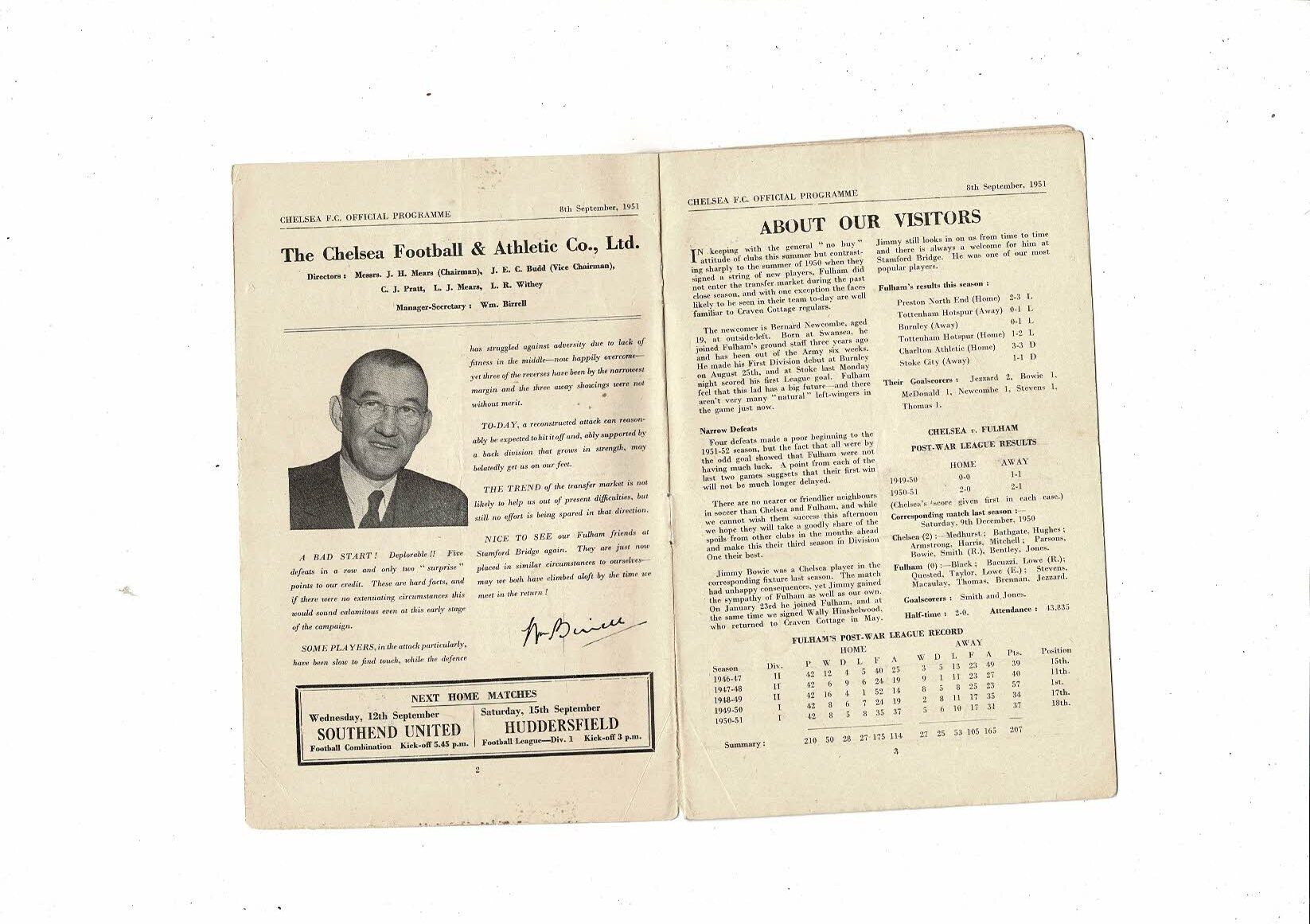 1951/52 Chelsea v Fulham Football Programme