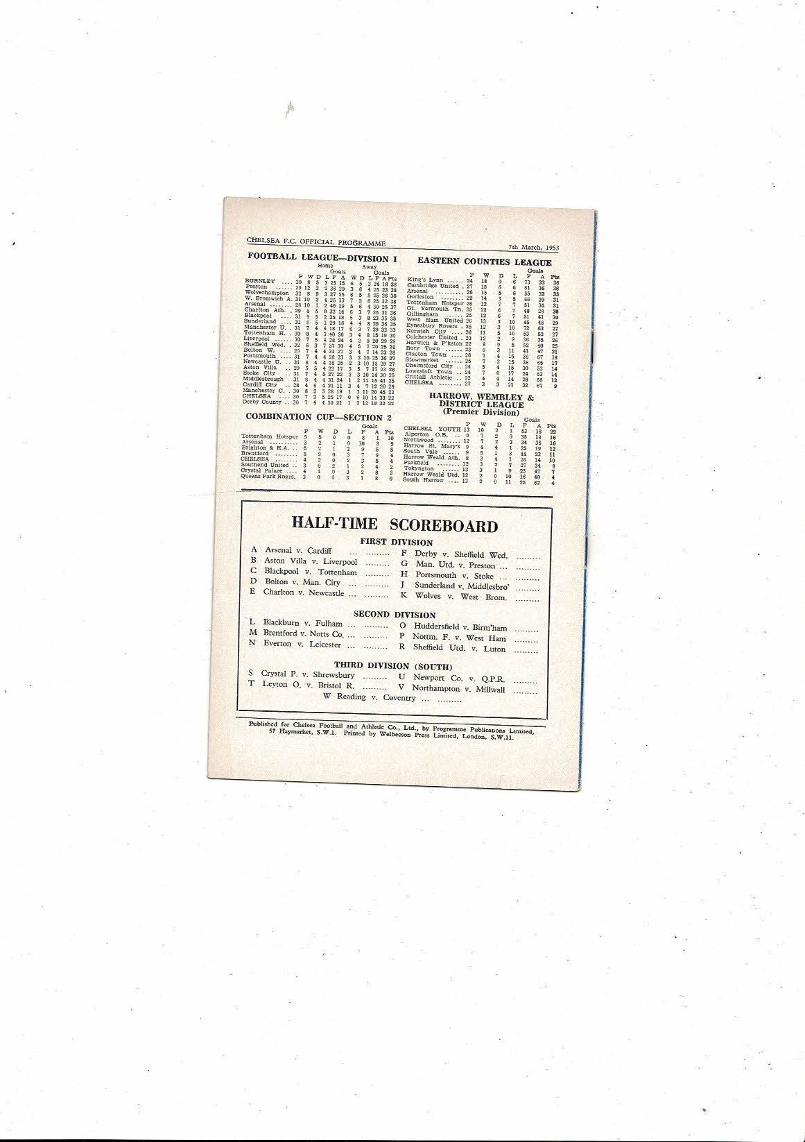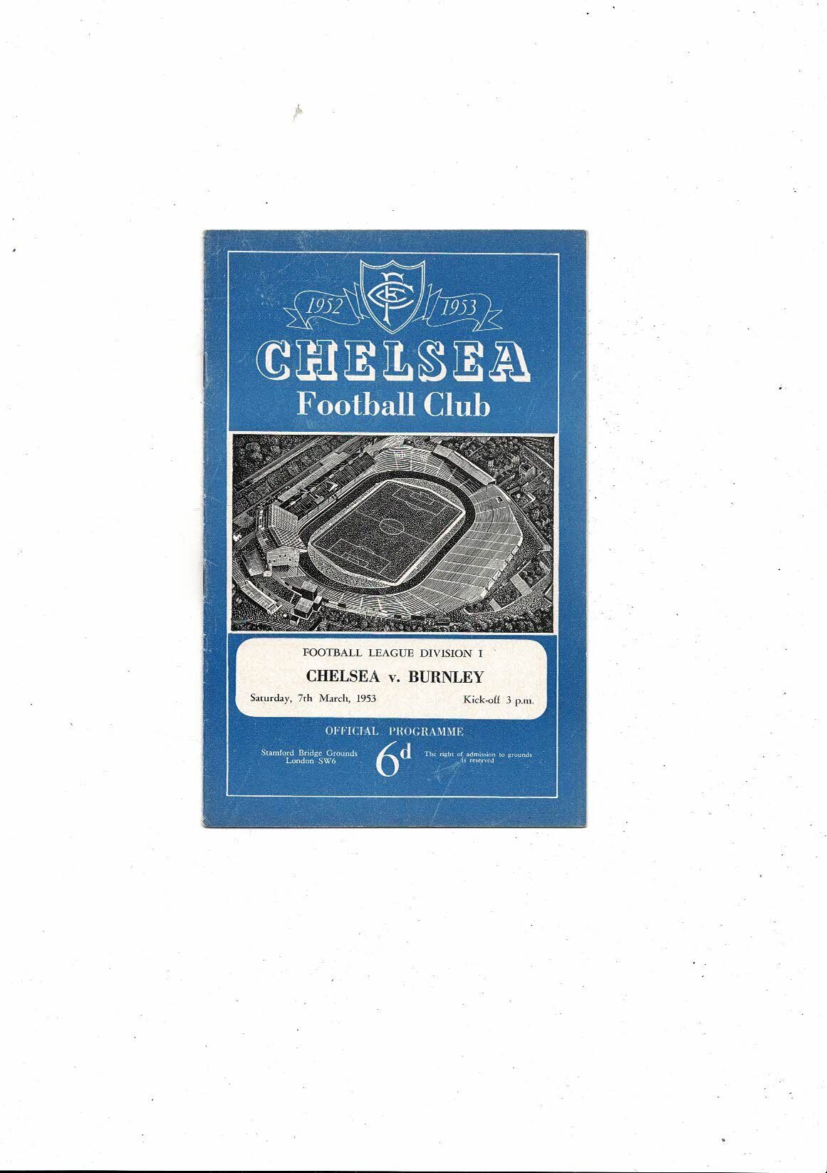 1952/53 Chelsea v Burnley Football Programme