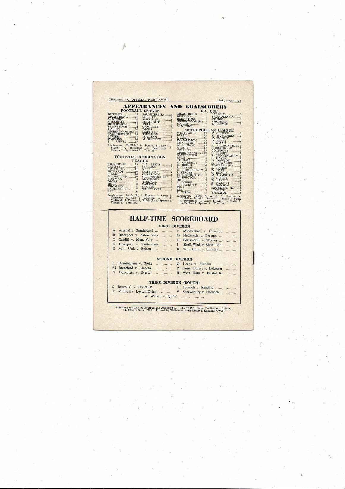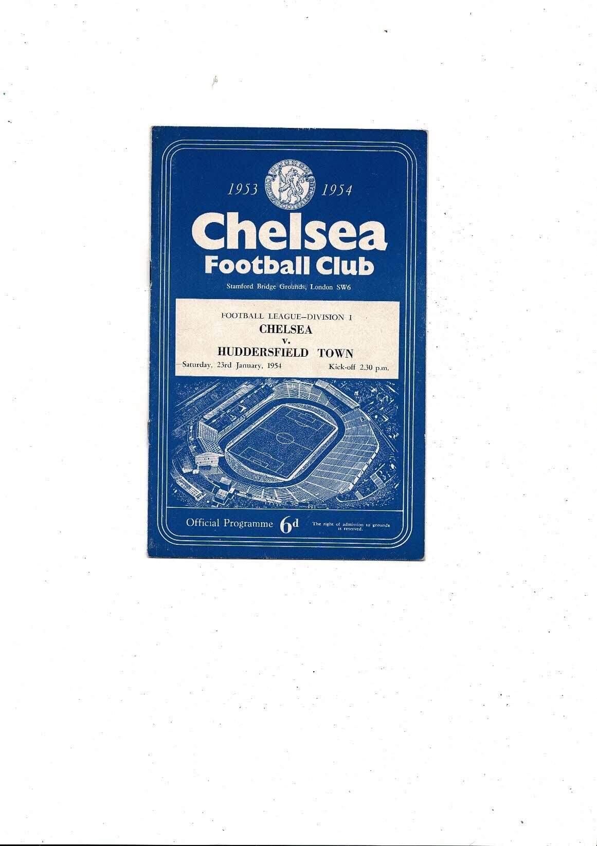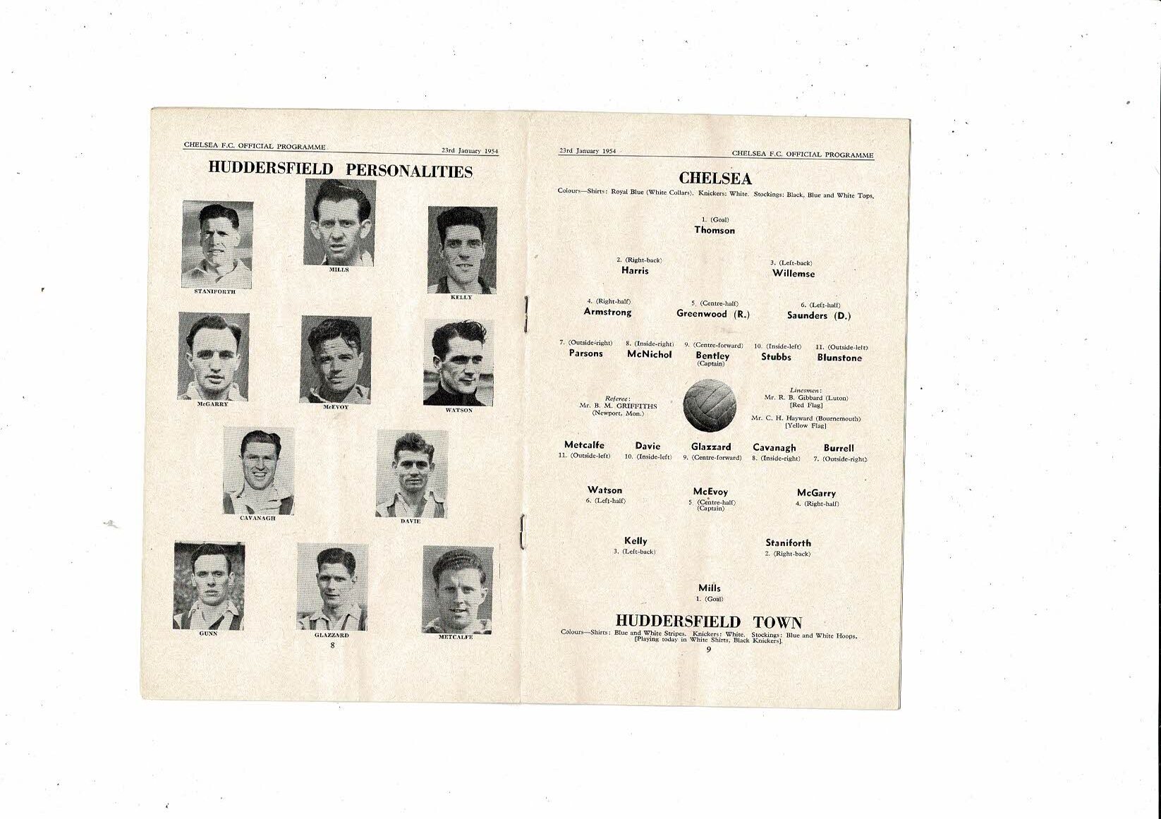 1953/54 Chelsea v Huddersfield Town Football Programme
