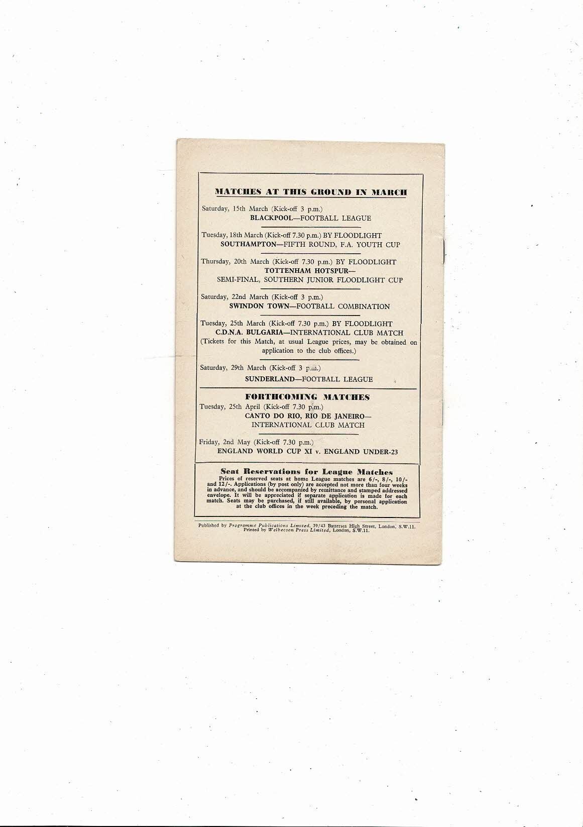 1957/58 Chelsea v Wolves Football Programme