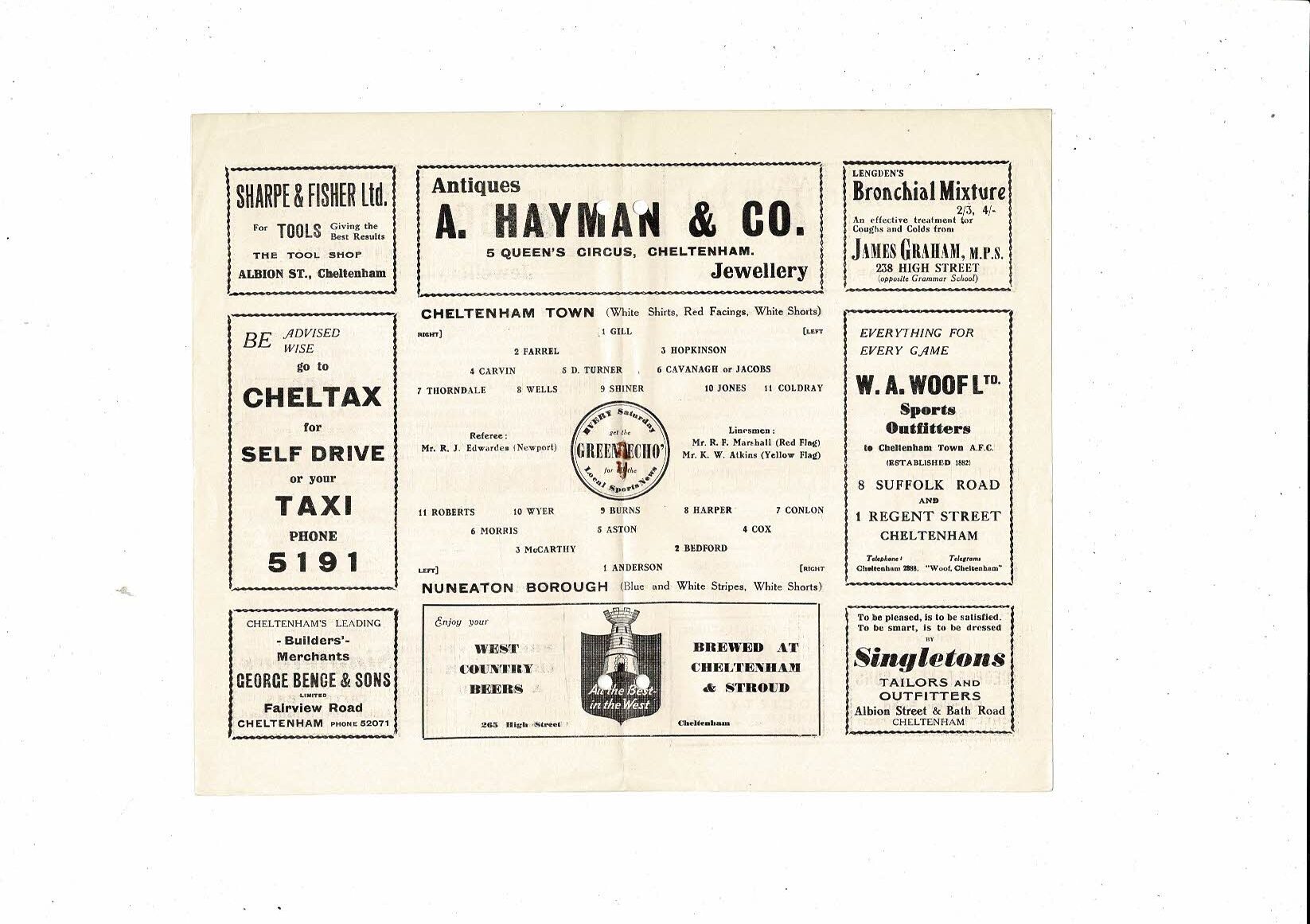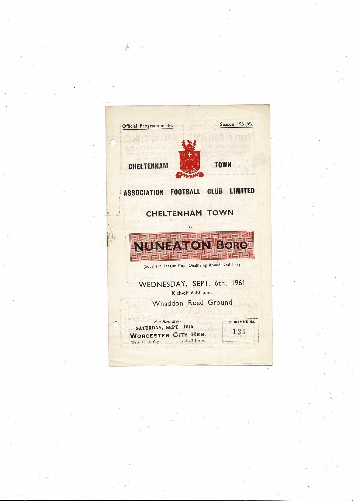 1961/62 Cheltenham Town v Nuneaton Borough Southern League Cup Programme