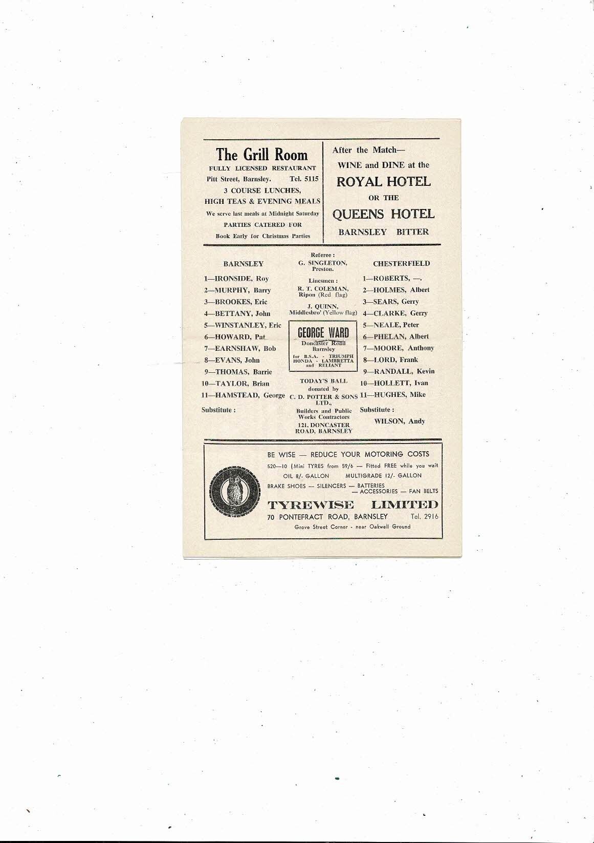 1967/68 Barnsley v Chesterfield Football Programme