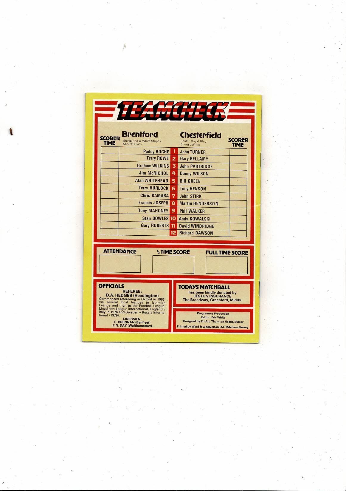 1982/83 Brentford v Chesterfield Football Programme