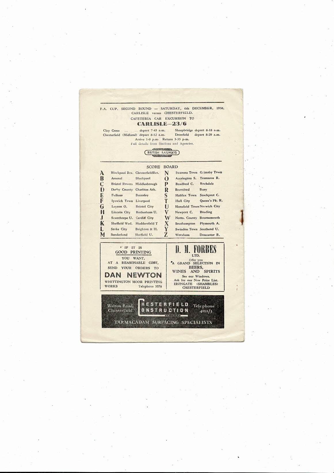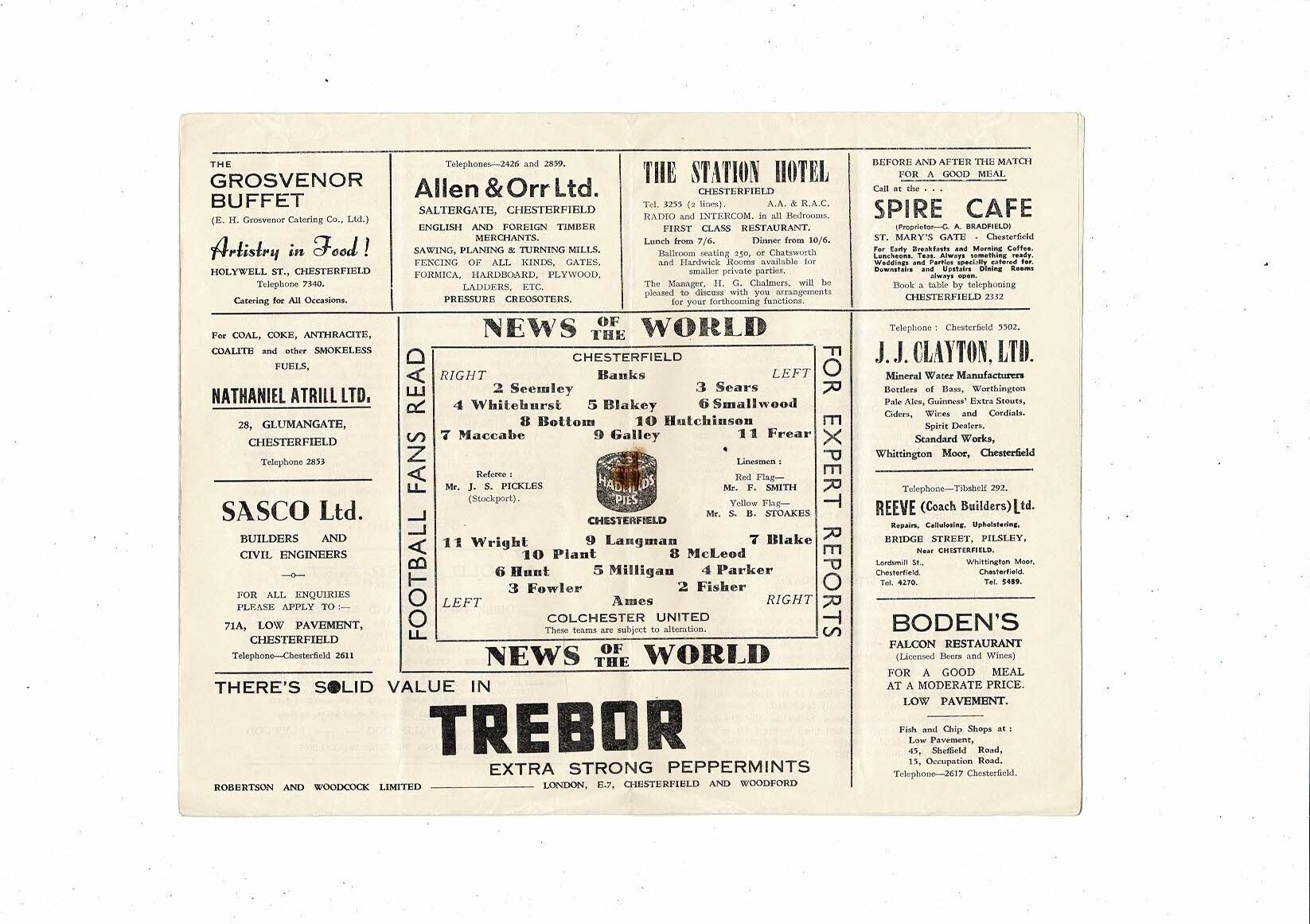 1958/59 Chesterfield v Colchester United Football Programme
