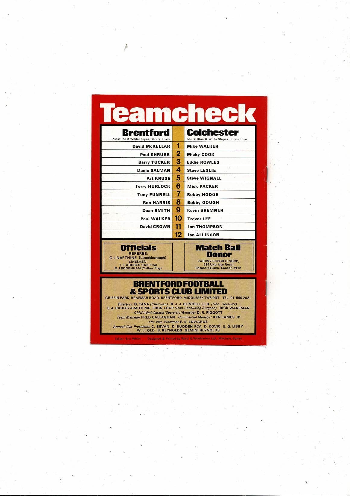 1980/81 Brentford v Colchester United Football Programme