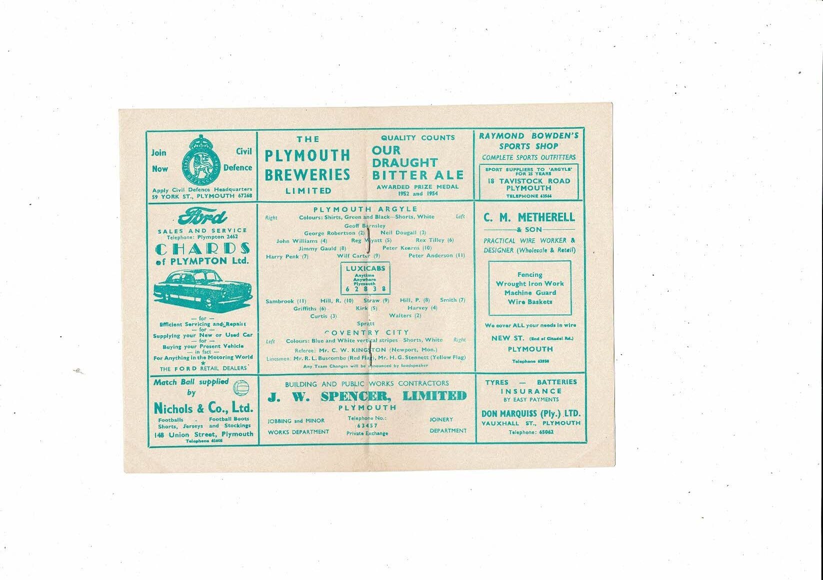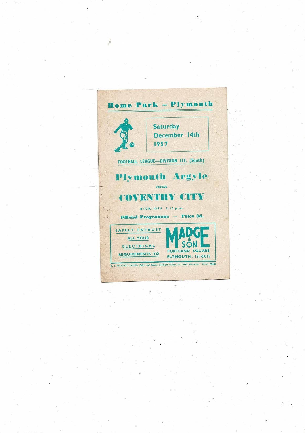 1957/58 Plymouth Argyle v Coventry City Football Programme