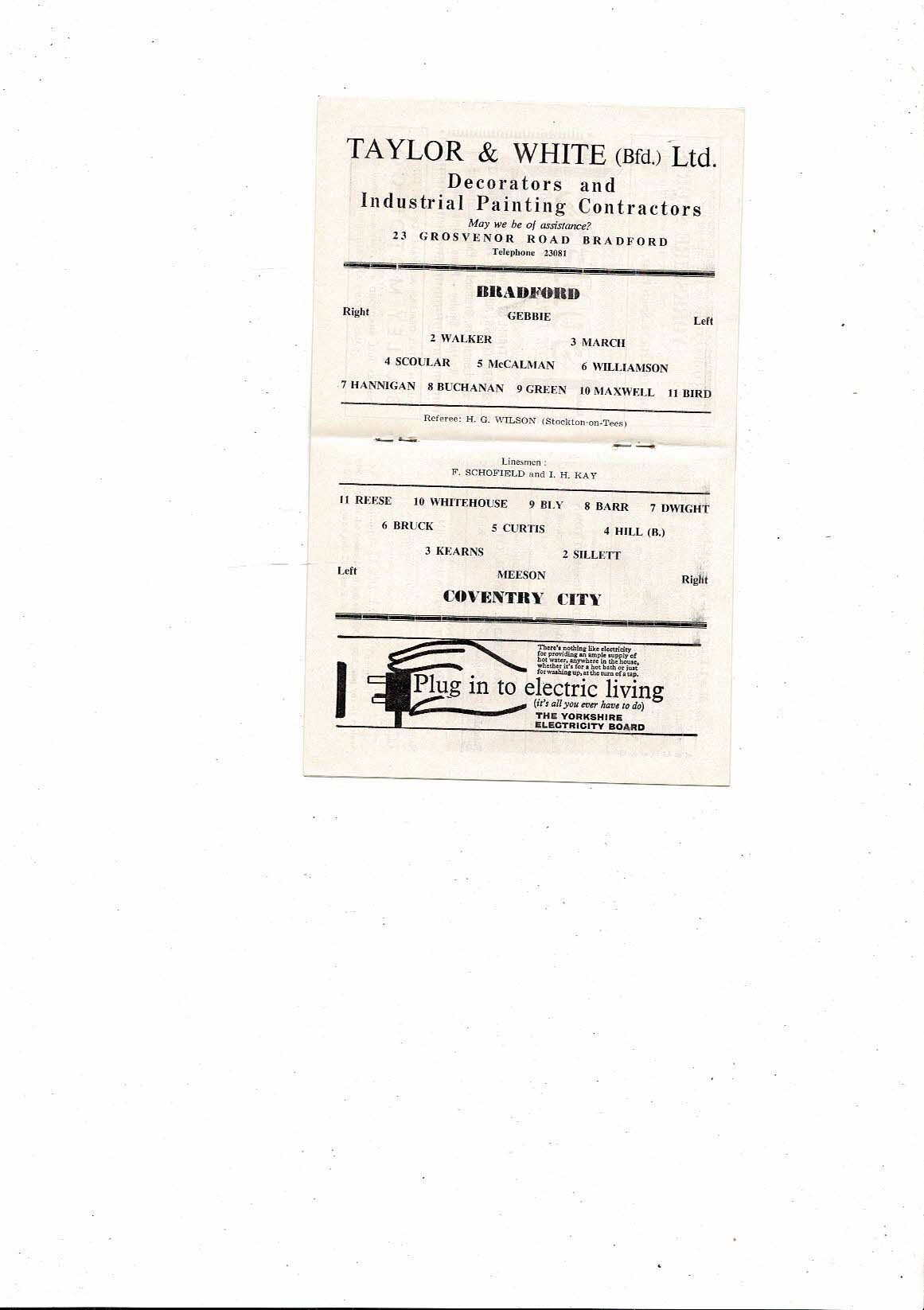 1962/63 Bradford Park Avenue v Coventry City Football Programme