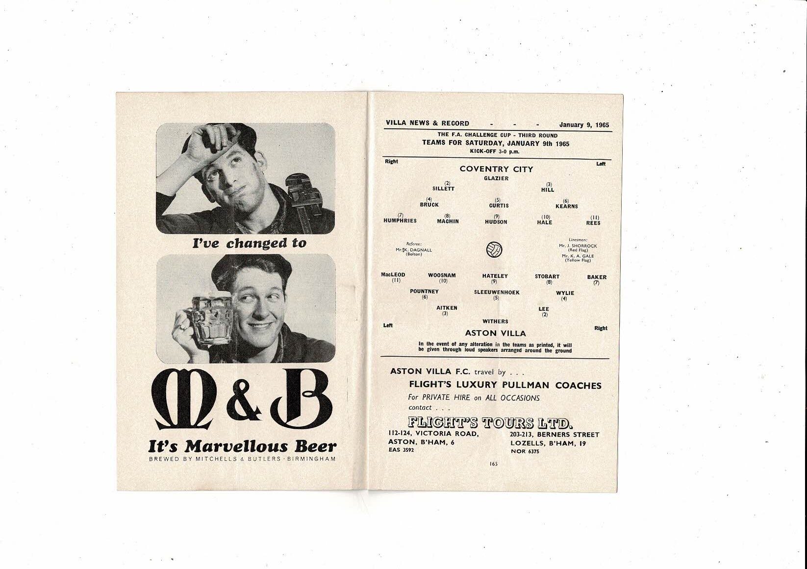 1964/65 Aston Villa v Coventry City FA Cup Football Programme