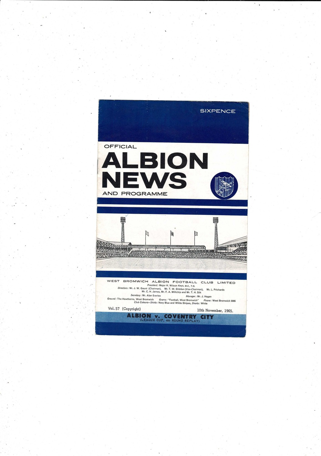 1965/66 West Bromwich Albion v Coventry City League Cup Replay Football Programme