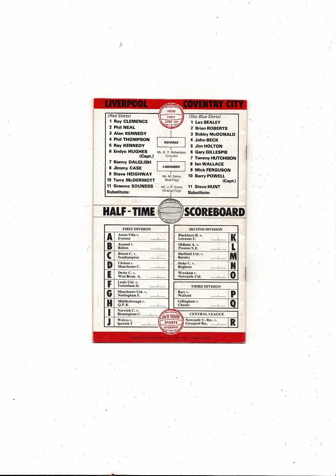 1978/79 Liverpool v Coventry City Football Programme