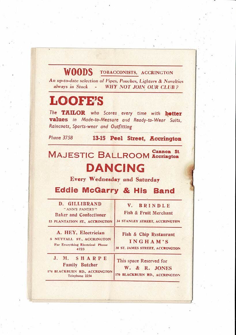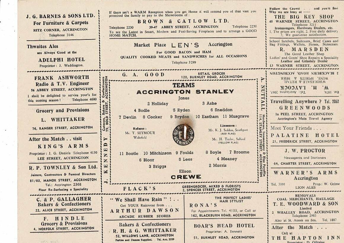1953/54 Accrington Stanley v Crewe Alexandra Football Programme