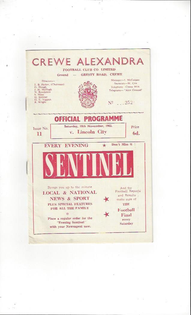 1962/63 Crewe Alexandra v Lincoln City Football Programme
