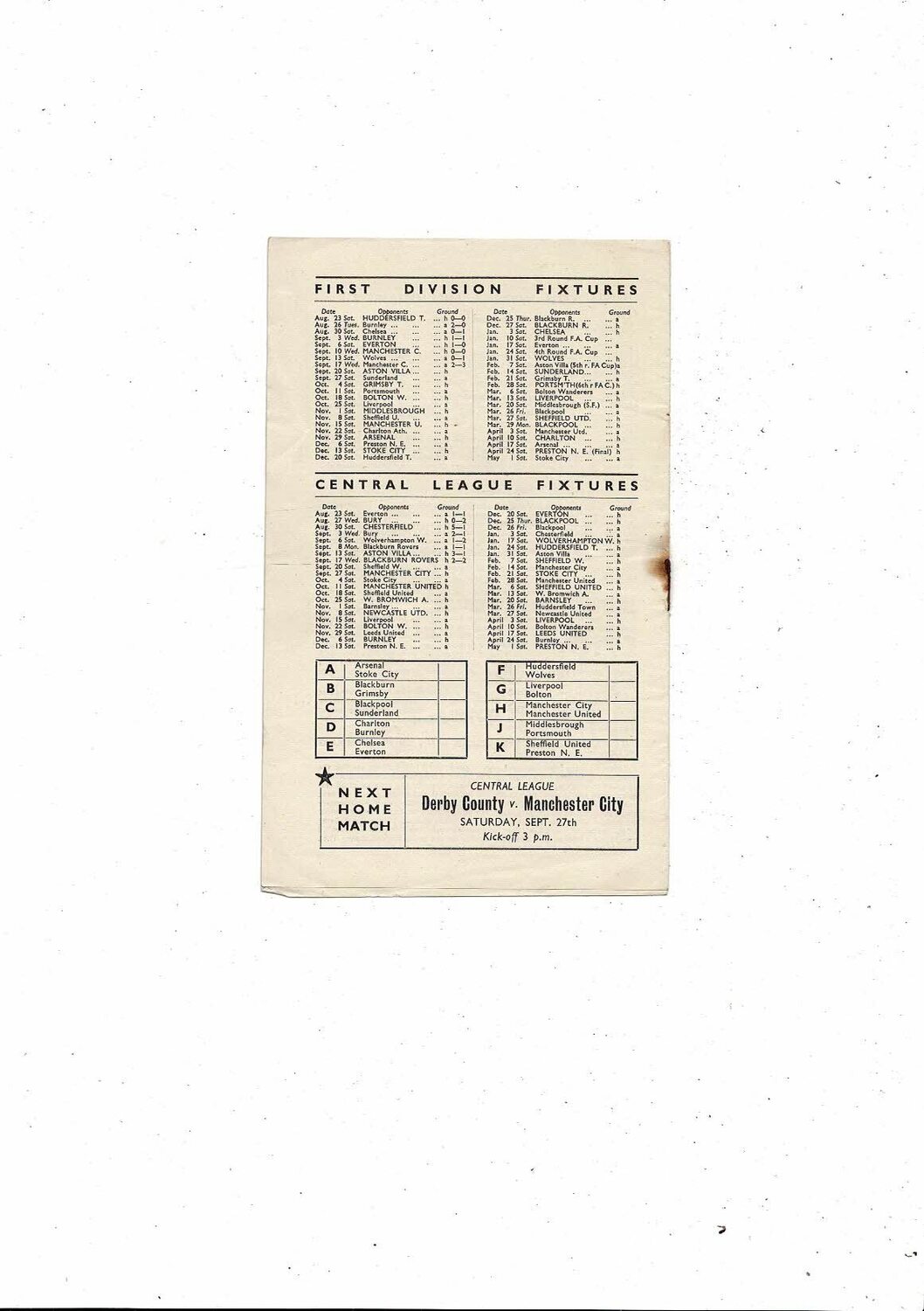 This Original Football Programme is creased also has a fold with some staining, rusty staple & several tiny nic's. No handwriting. Please see scans.