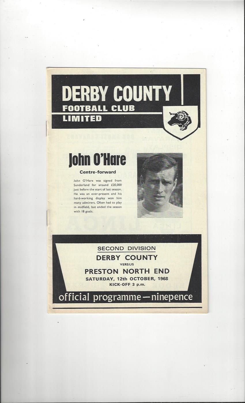 1968/69 Derby County v Preston Football Programme