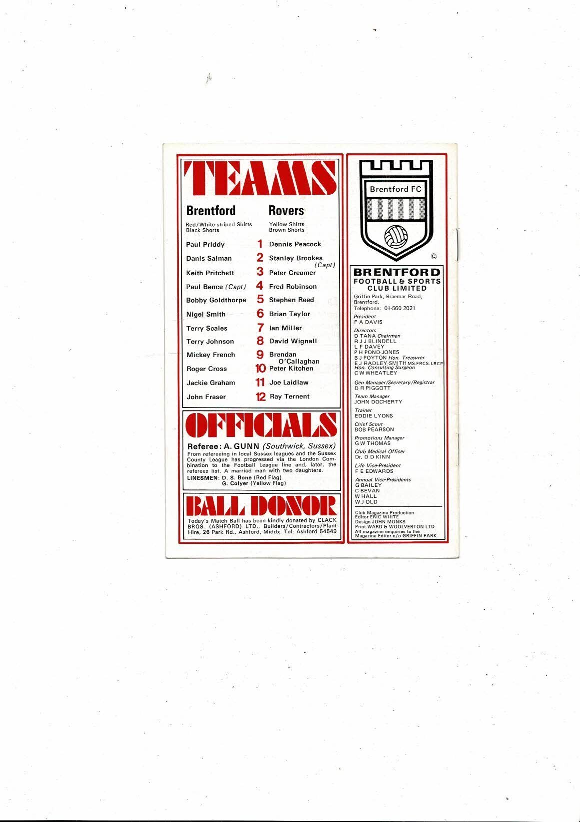 1976/77 Brentford v Doncaster Rovers Football Programme