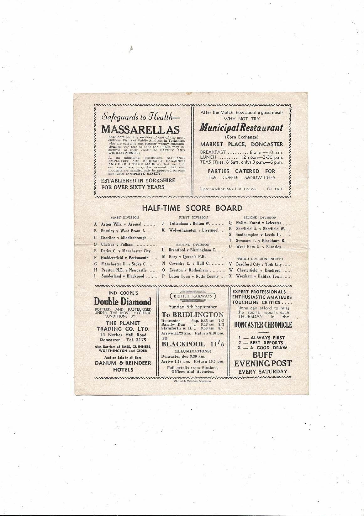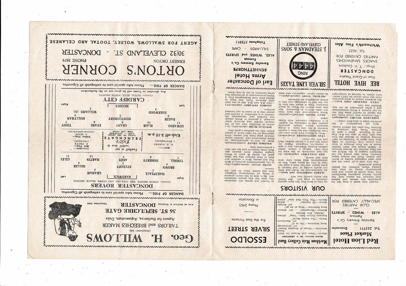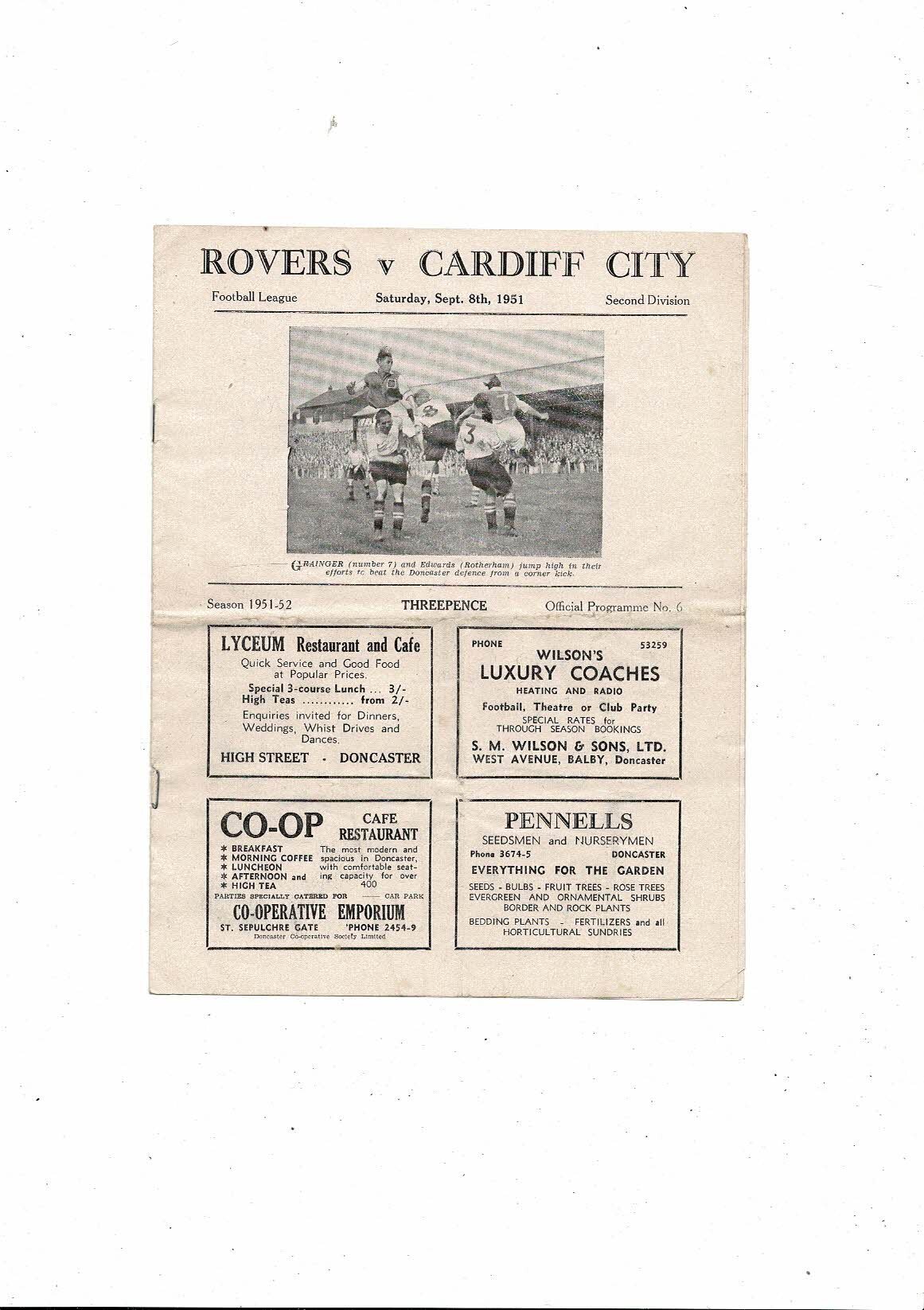1951/52 Doncaster Rovers v Cardiff City Football Programme