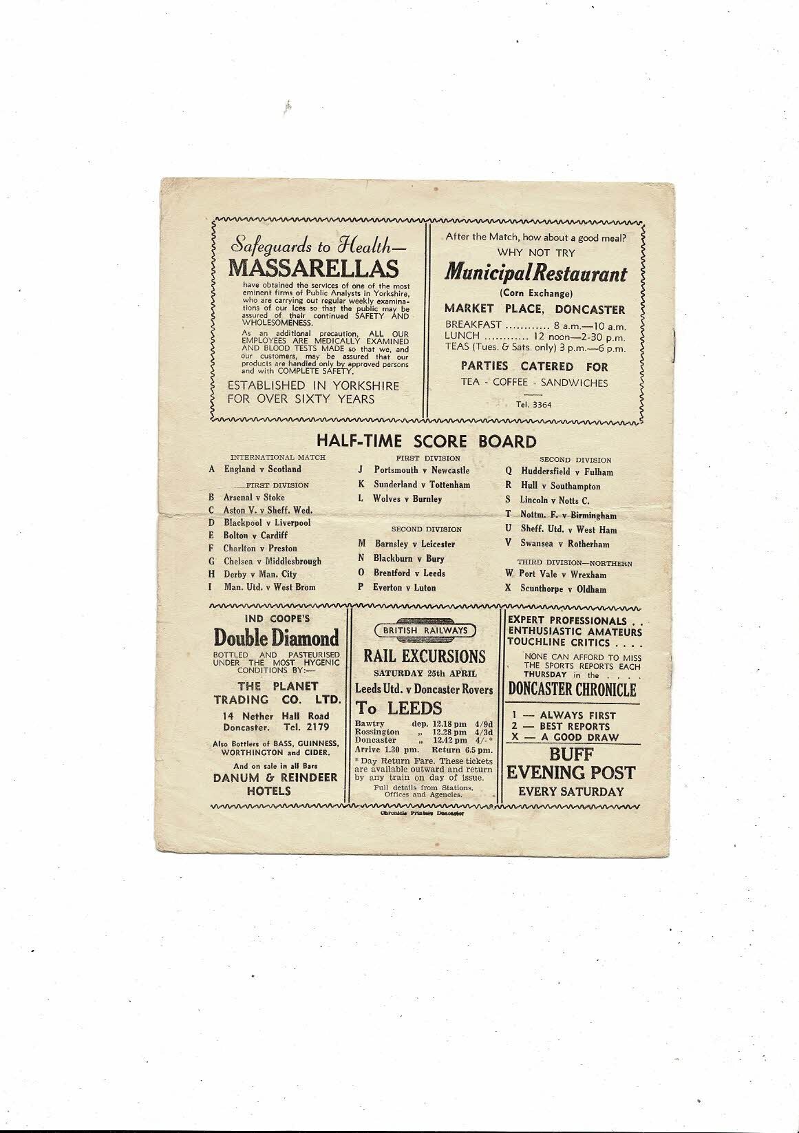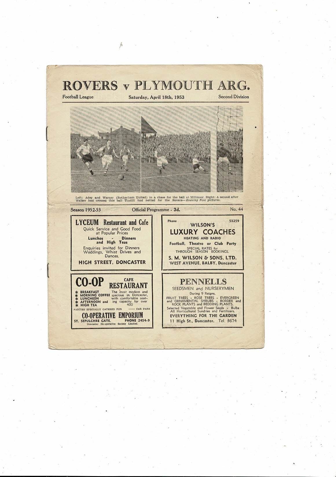 1952/53 Doncaster Rovers v Plymouth Argyle Football Programme